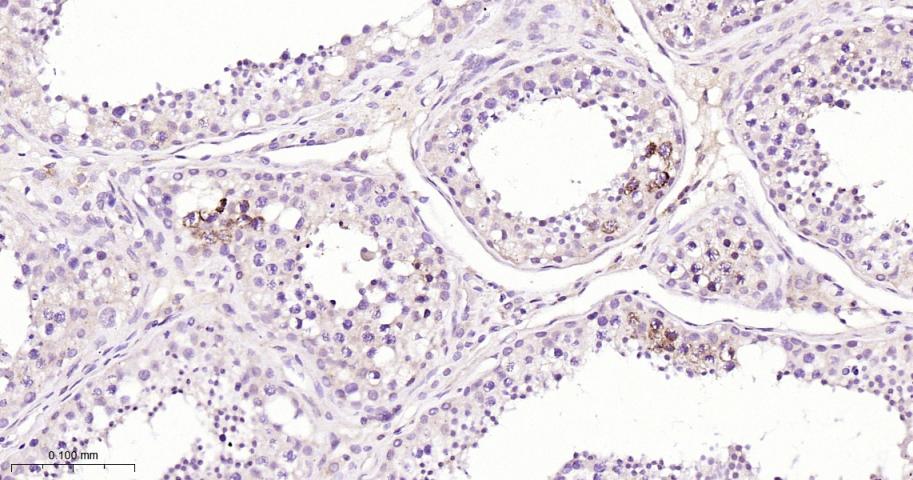 Paraformaldehyde-fixed, paraffin embedded Human Testicles; Antigen retrieval by boiling in sodium citrate buffer (pH6.0) for 15 min; Antibody incubation with TCL1A Monoclonal Antibody, Unconjugated(bsm-61801R) at 1:200 overnight at 4°C, followed by conjugation to the bs-0295G-HRP and DAB (C-0010) staining.