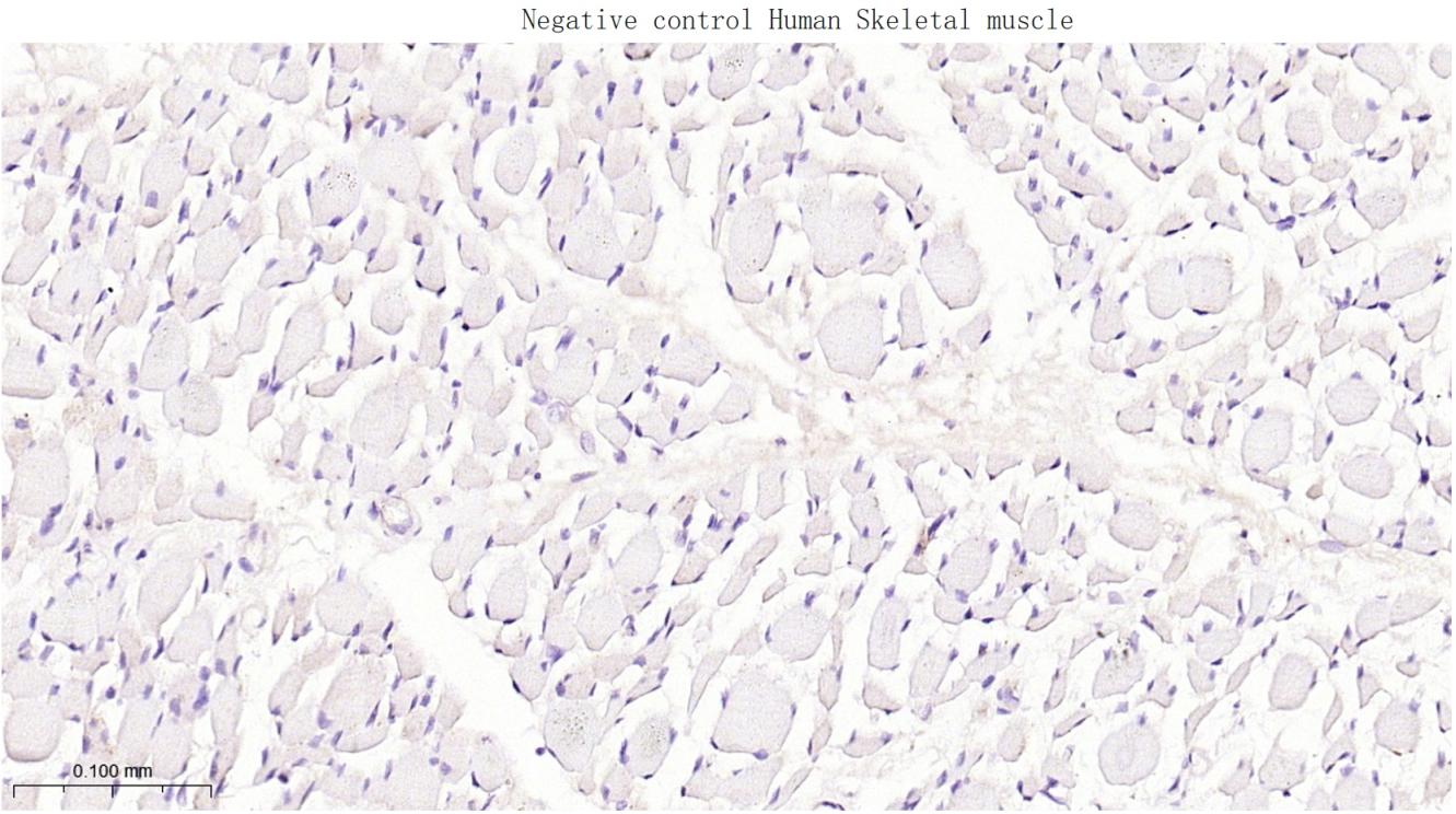 Paraformaldehyde-fixed, paraffin embedded Human Skeletal muscle; Antigen retrieval by boiling in sodium citrate buffer (pH6.0) for 15 min; Antibody incubation with TCL1A Monoclonal Antibody, Unconjugated(bsm-61801R) at 1:200 overnight at 4°C, followed by conjugation to the bs-0295G-HRP and DAB (C-0010) staining.
