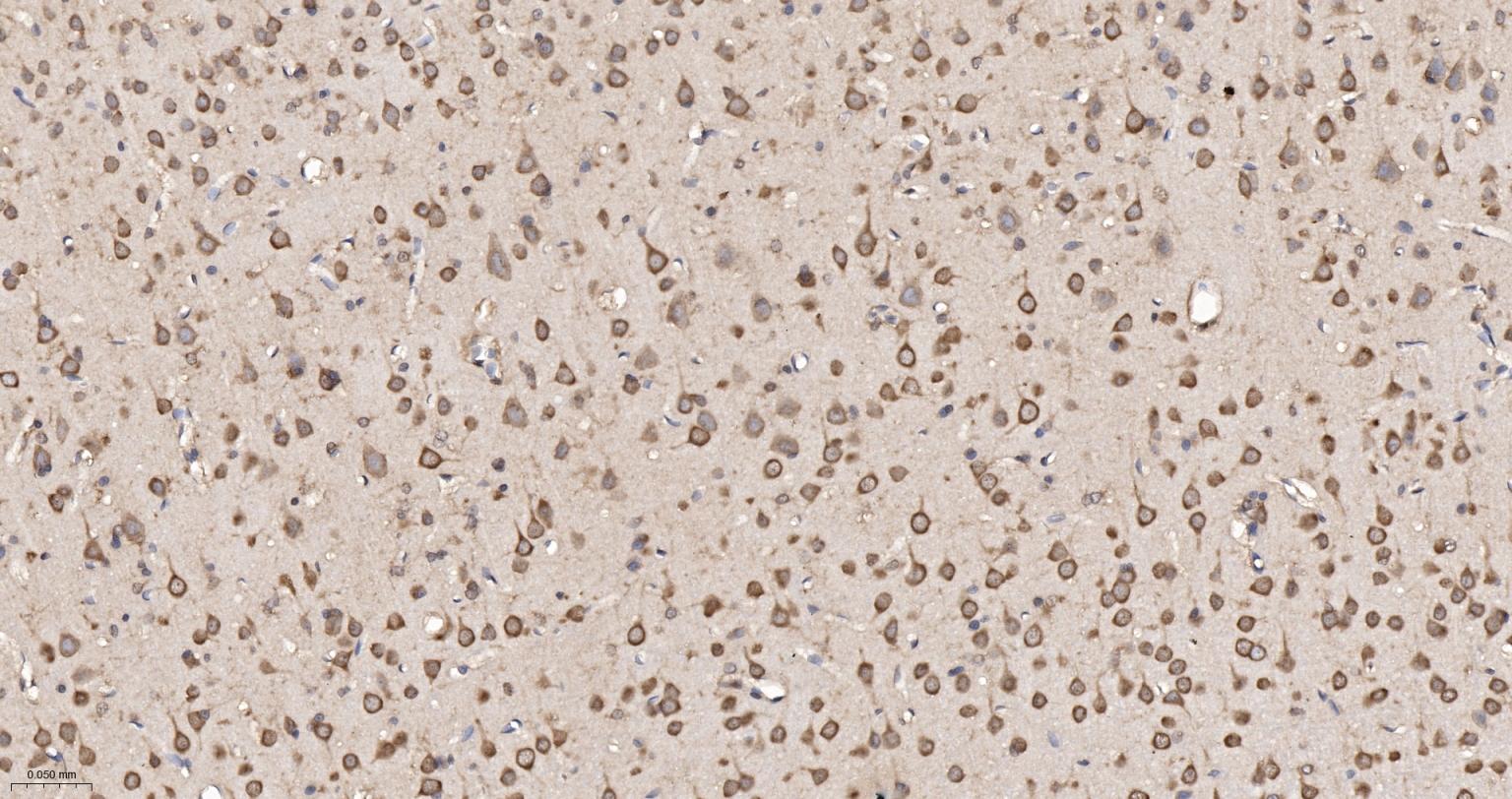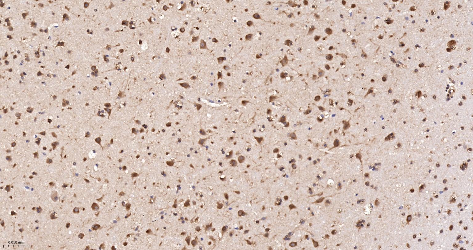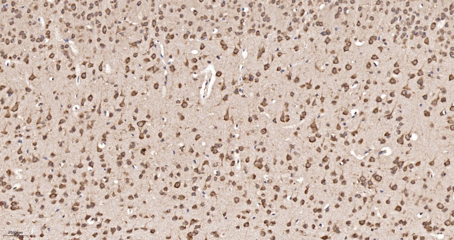 Paraformaldehyde-fixed, paraffin embedded Rat Cerebrum; Antigen retrieval by boiling in sodium citrate buffer (pH6.0) for 15 min; The section was incubated with eIF1AX Monoclonal Antibody, Unconjugated (bsm-61809R) at 1:200 overnight at 4°C, followed by conjugation to the bs-0295G-HRP and DAB (C-0010) staining.