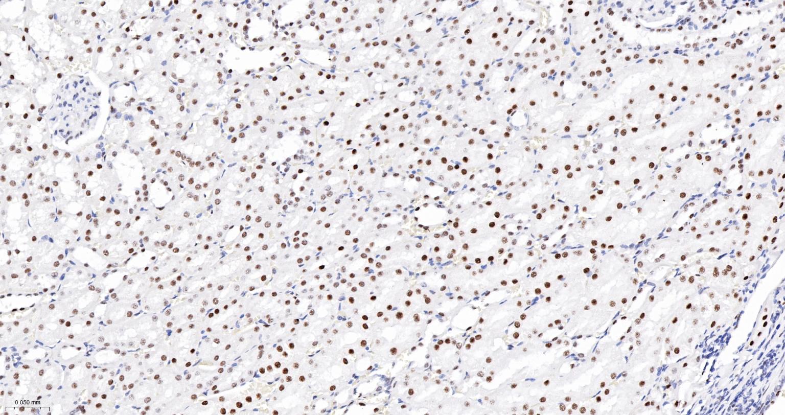 Paraformaldehyde-fixed, paraffin embedded Human Kidney; Antigen retrieval by boiling in sodium citrate buffer (pH6.0) for 15 min; The section was incubated with PB1 Monoclonal Antibody, Unconjugated (bsm-61815R) at 1:200 overnight at 4°C, followed by conjugation to the bs-0295G-HRP and DAB (C-0010) staining.
