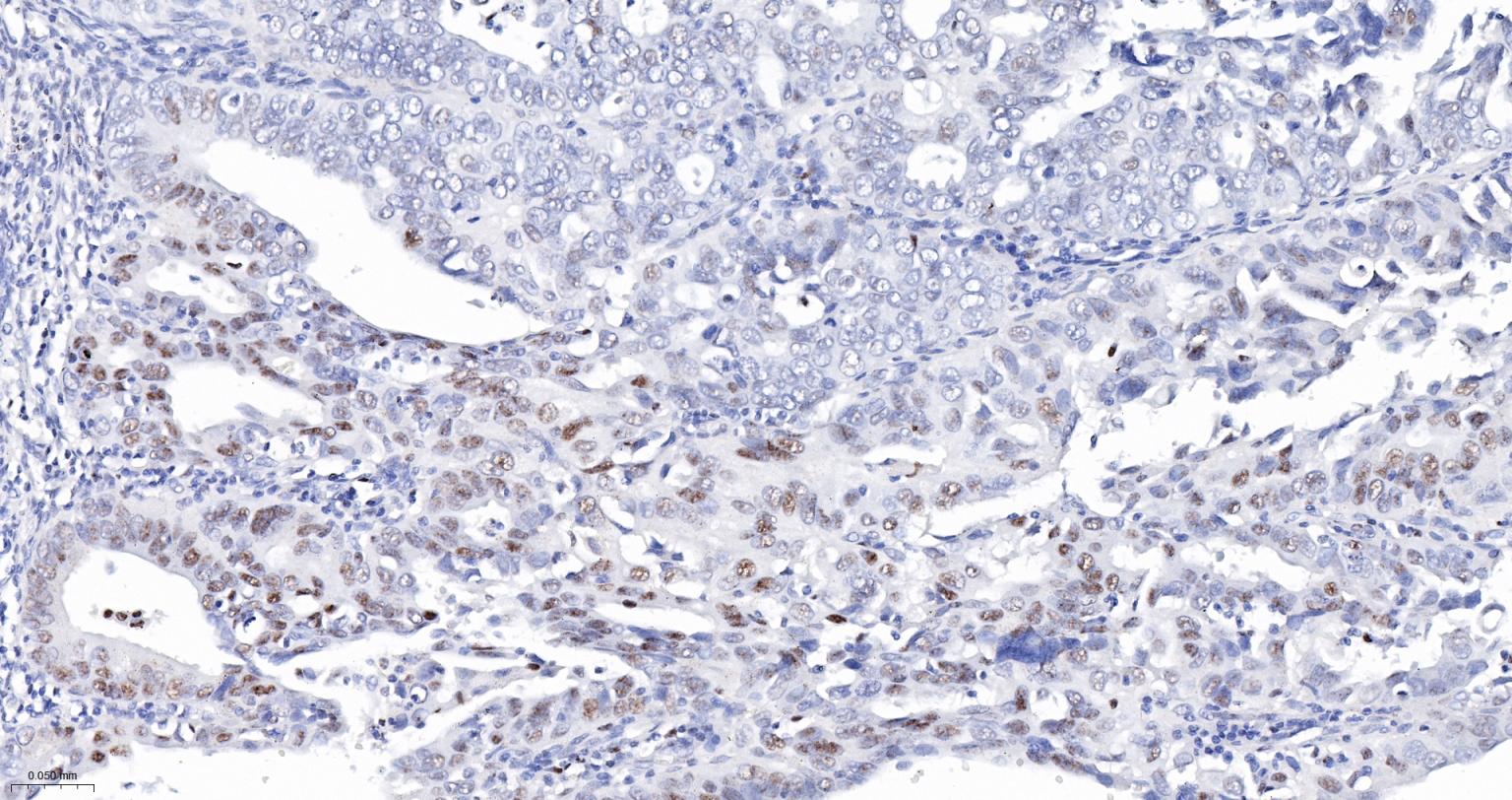 Paraformaldehyde-fixed, paraffin embedded Human Endometrial Cancer; Antigen retrieval by boiling in sodium citrate buffer (pH6.0) for 15 min; The section was incubated with PB1 Monoclonal Antibody, Unconjugated (bsm-61815R) at 1:200 overnight at 4°C, followed by conjugation to the bs-0295G-HRP and DAB (C-0010) staining.