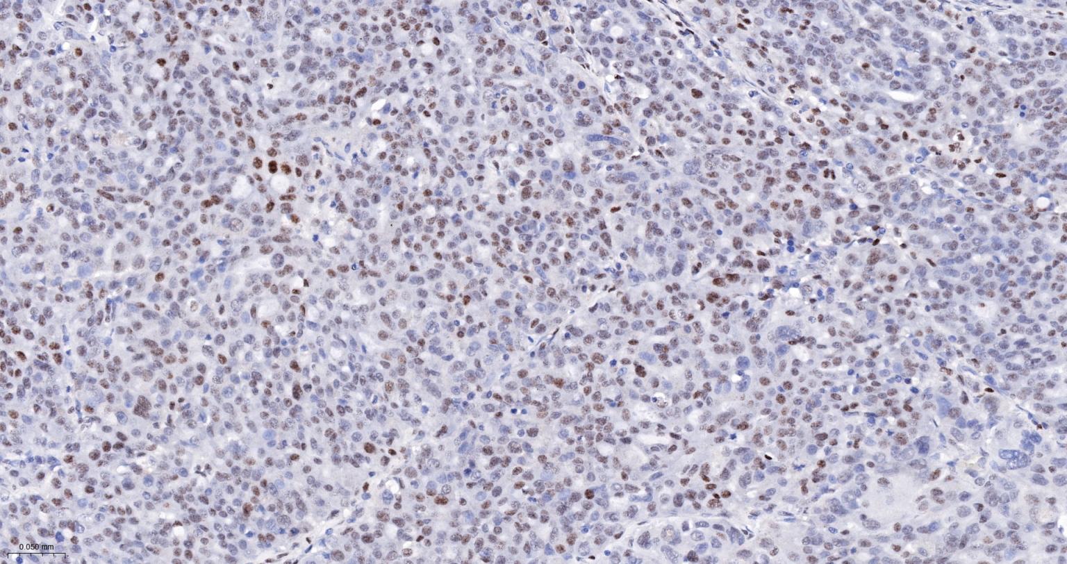 Paraformaldehyde-fixed, paraffin embedded Human Ovarian Cancer; Antigen retrieval by boiling in sodium citrate buffer (pH6.0) for 15 min; The section was incubated with PB1 Monoclonal Antibody, Unconjugated (bsm-61815R) at 1:200 overnight at 4°C, followed by conjugation to the bs-0295G-HRP and DAB (C-0010) staining.
