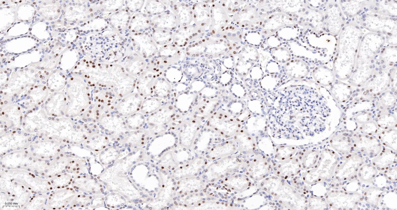 Paraformaldehyde-fixed, paraffin embedded Rat Kidney; Antigen retrieval by boiling in sodium citrate buffer (pH6.0) for 15 min; The section was incubated with PB1 Monoclonal Antibody, Unconjugated (bsm-61815R) at 1:200 overnight at 4°C, followed by conjugation to the bs-0295G-HRP and DAB (C-0010) staining.