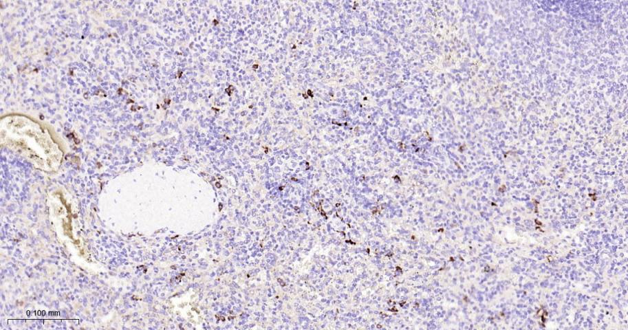 Paraformaldehyde-fixed, paraffin embedded Human Spleen; Antigen retrieval by boiling in sodium citrate buffer (pH6.0) for 15 min; The section was incubated with Peroxiredoxin-4 Monoclonal Antibody, Unconjugated (bsm-61828R) at 1:200 overnight at 4°C, followed by conjugation to the bs-0295G-HRP and DAB (C-0010) staining.