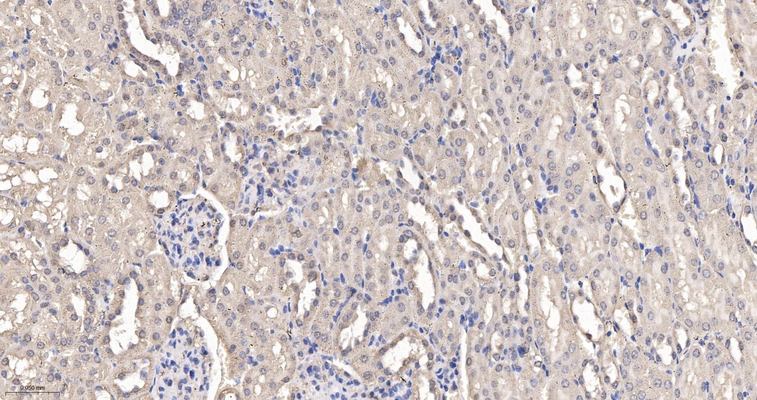 Paraformaldehyde-fixed, paraffin embedded Mouse Kidney; Antigen retrieval by boiling in sodium citrate buffer (pH6.0) for 15 min; The section was incubated with VPS35 Monoclonal Antibody, Unconjugated (bsm-61829R) at 1:200 overnight at 4°C, followed by conjugation to the bs-0295G-HRP and DAB (C-0010) staining.