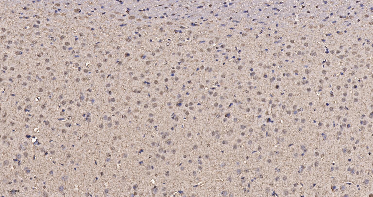 Paraformaldehyde-fixed, paraffin embedded Rat Cerebrum; Antigen retrieval by boiling in sodium citrate buffer (pH6.0) for 15 min; The section was incubated with VPS35 Monoclonal Antibody, Unconjugated (bsm-61829R) at 1:200 overnight at 4°C, followed by conjugation to the bs-0295G-HRP and DAB (C-0010) staining.