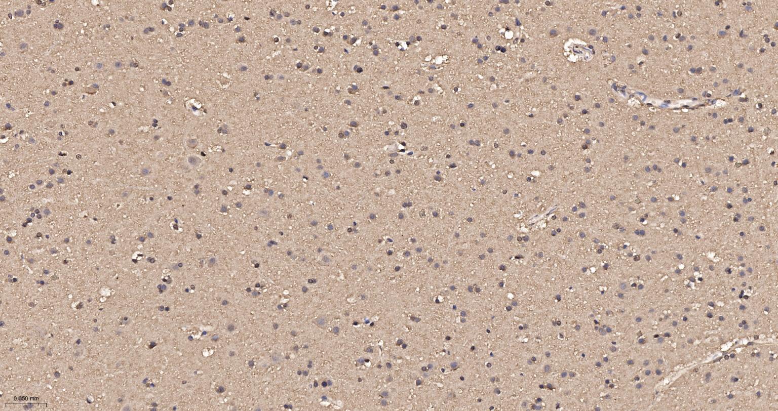 Paraformaldehyde-fixed, paraffin embedded Human Cerebrum; Antigen retrieval by boiling in sodium citrate buffer (pH6.0) for 15 min; The section was incubated with VPS35 Monoclonal Antibody, Unconjugated (bsm-61829R) at 1:200 overnight at 4°C, followed by conjugation to the bs-0295G-HRP and DAB (C-0010) staining.