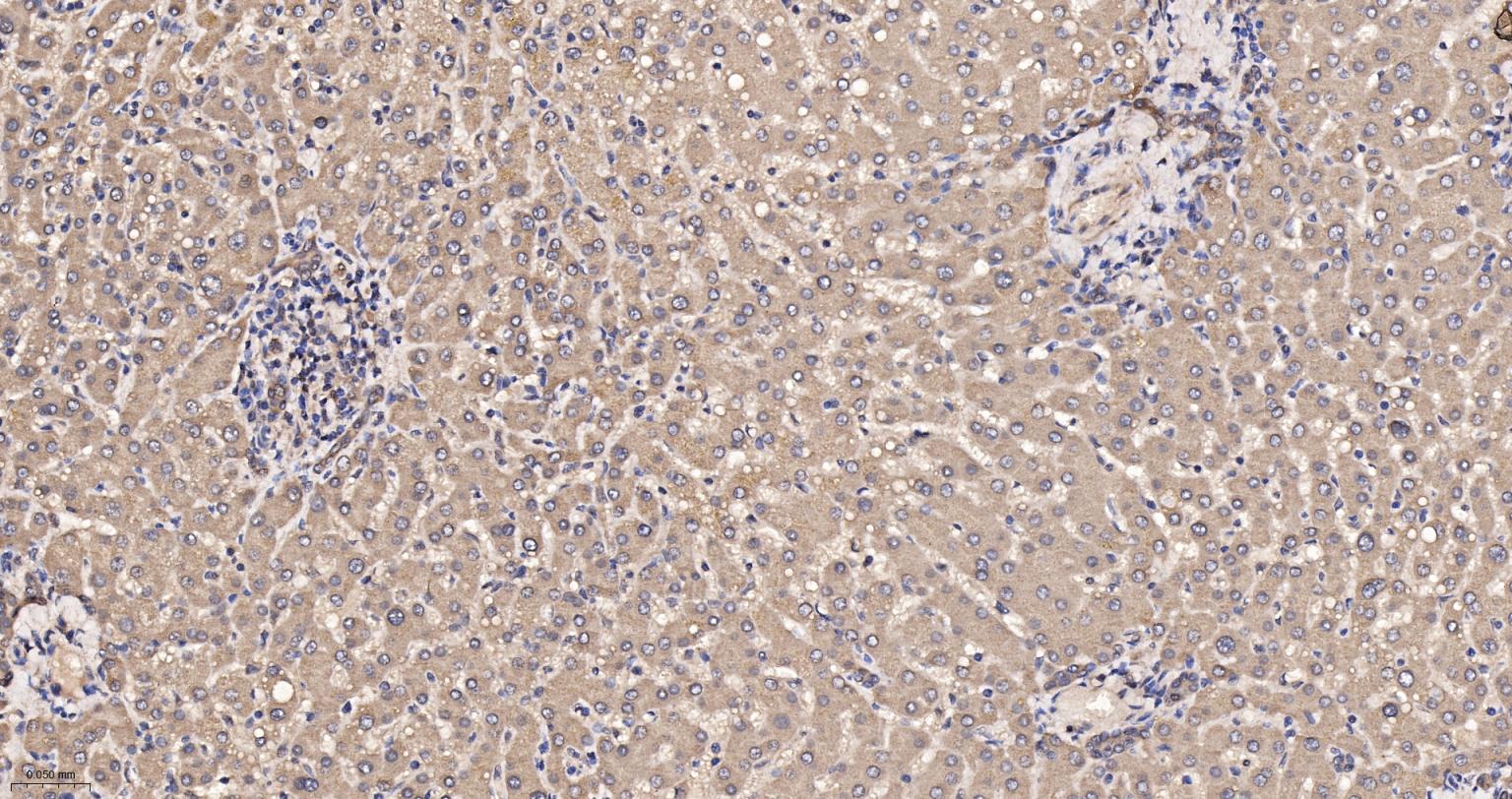 Paraformaldehyde-fixed, paraffin embedded Rat Liver; Antigen retrieval by boiling in sodium citrate buffer (pH6.0) for 15 min; The section was incubated with VPS35 Monoclonal Antibody, Unconjugated (bsm-61829R) at 1:200 overnight at 4°C, followed by conjugation to the bs-0295G-HRP and DAB (C-0010) staining.