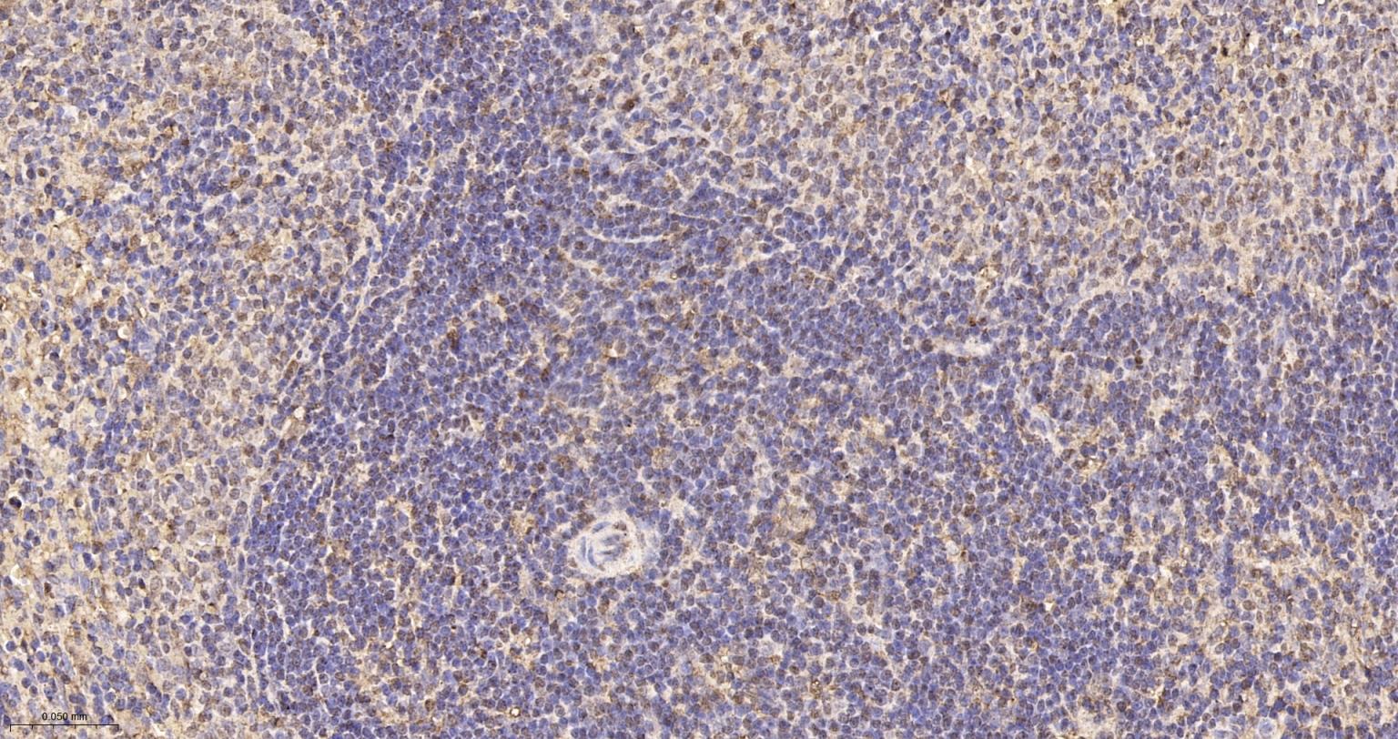Paraformaldehyde-fixed, paraffin embedded Rat Spleen; Antigen retrieval by boiling in sodium citrate buffer (pH6.0) for 15 min; The section was incubated with VPS35 Monoclonal Antibody, Unconjugated (bsm-61829R) at 1:200 overnight at 4°C, followed by conjugation to the bs-0295G-HRP and DAB (C-0010) staining.