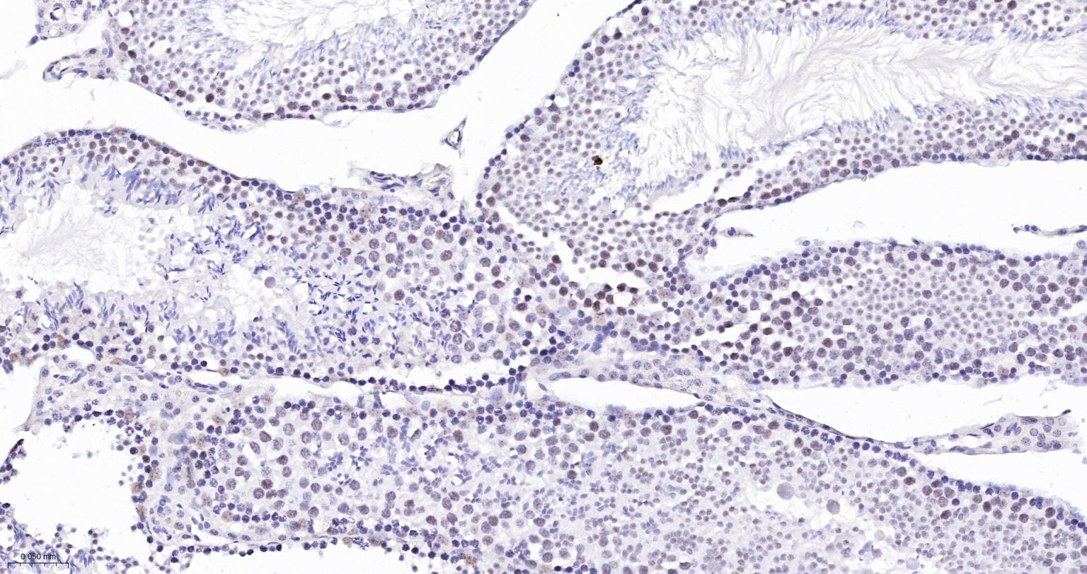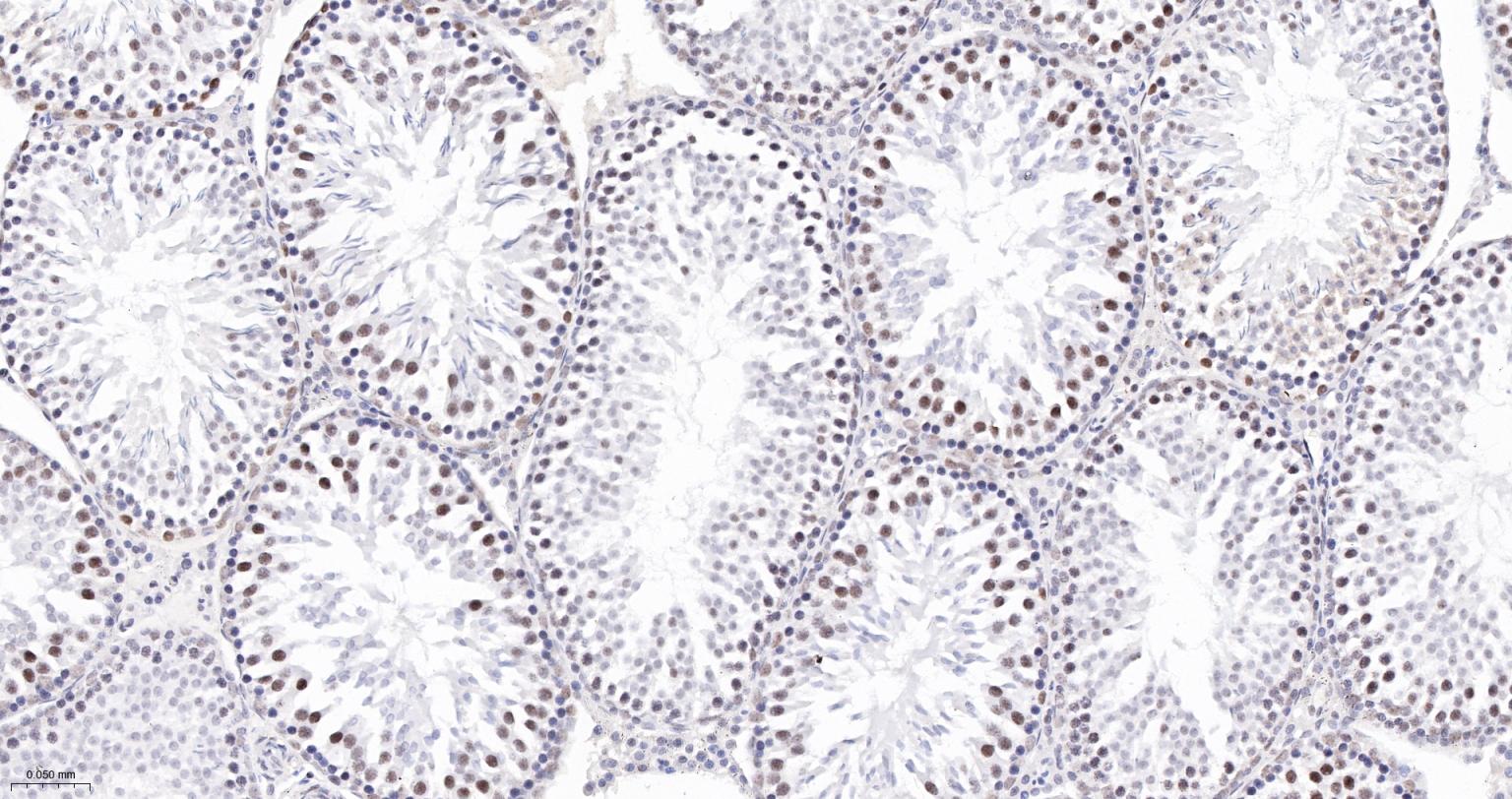 Paraformaldehyde-fixed, paraffin embedded Rat Testicles; Antigen retrieval by boiling in sodium citrate buffer (pH6.0) for 15 min; The section was incubated with BCLAF1 Monoclonal Antibody, Unconjugated (bsm-62880R) at 1:200 overnight at 4°C, followed by conjugation to the bs-0295G-HRP and DAB (C-0010) staining.