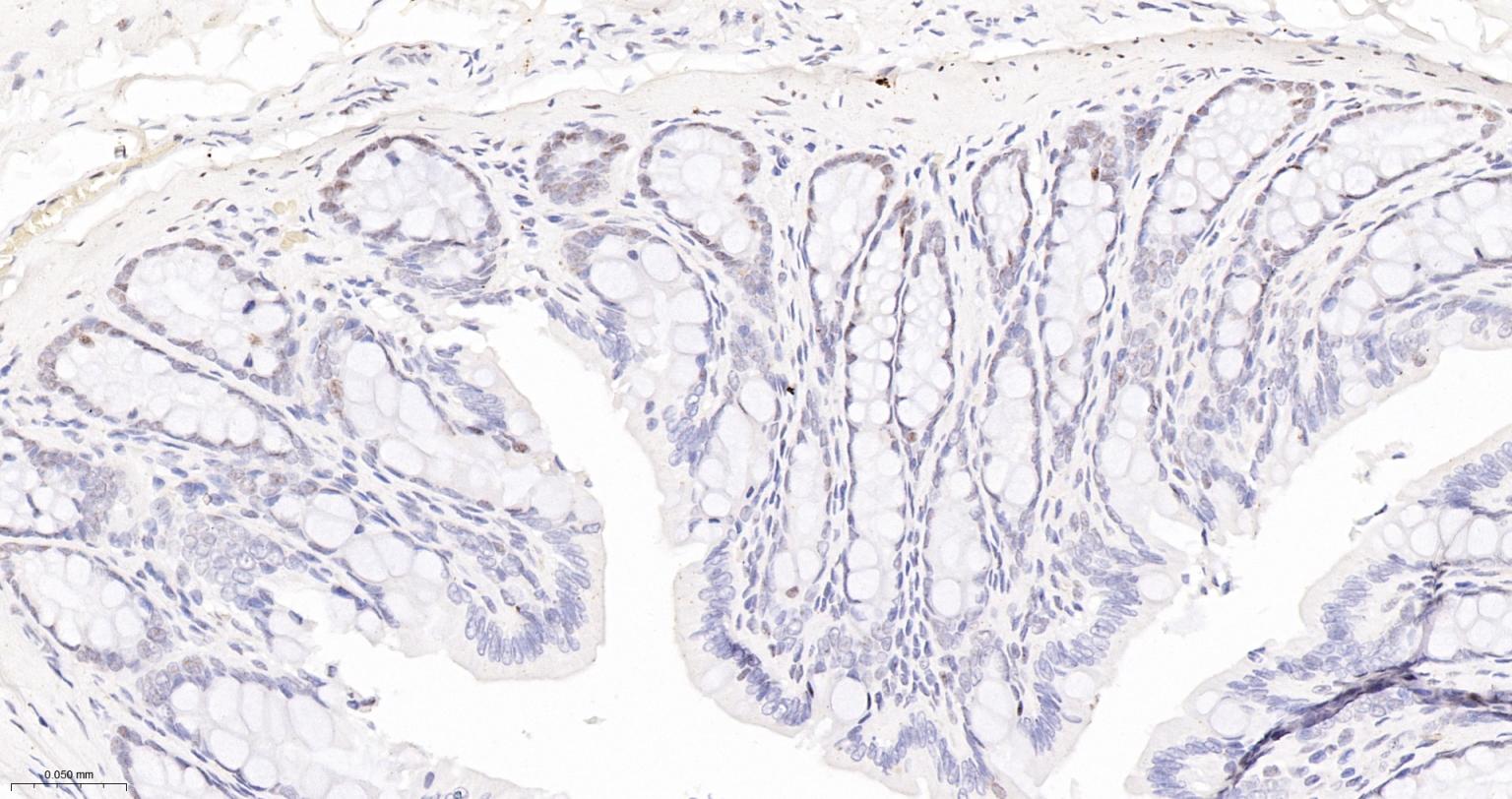 Paraformaldehyde-fixed, paraffin embedded Mouse Colon; Antigen retrieval by boiling in sodium citrate buffer (pH6.0) for 15 min; The section was incubated with BCLAF1 Monoclonal Antibody, Unconjugated (bsm-62880R) at 1:200 overnight at 4°C, followed by conjugation to the bs-0295G-HRP and DAB (C-0010) staining.