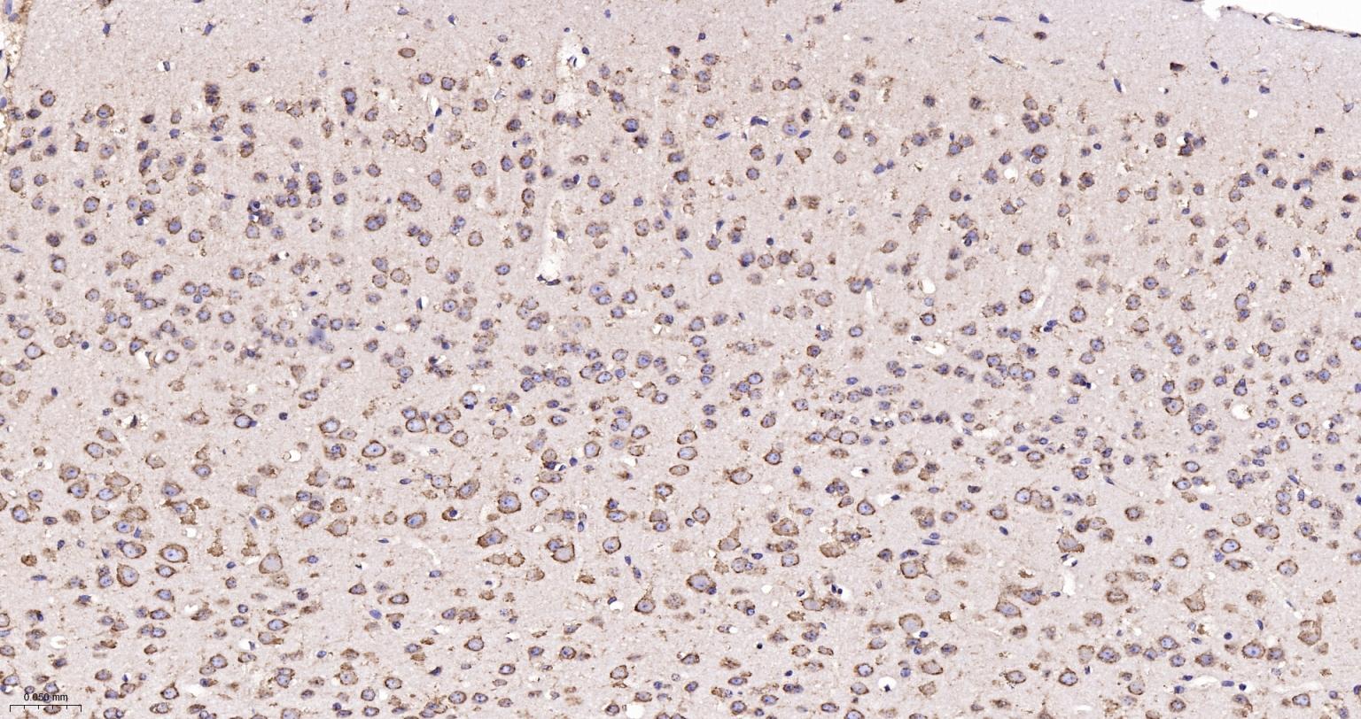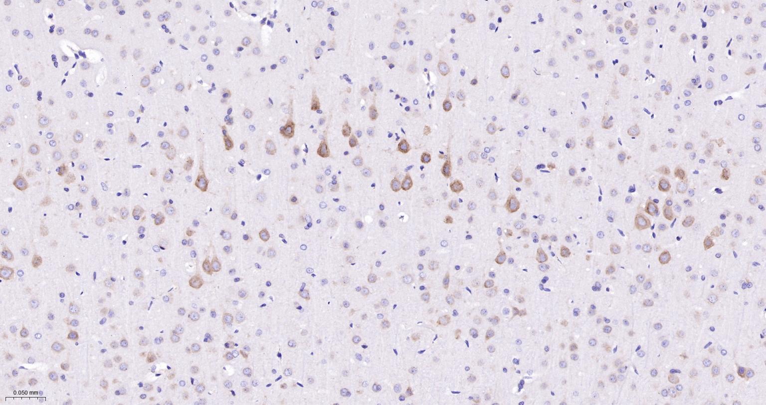 Paraformaldehyde-fixed, paraffin embedded Rat Cerebrum; Antigen retrieval by boiling in sodium citrate buffer (pH6.0) for 15 min; The section was incubated with KLC3 Monoclonal Antibody, Unconjugated (bsm-62881R) at 1:200 overnight at 4°C, followed by conjugation to the bs-0295G-HRP and DAB (C-0010) staining.