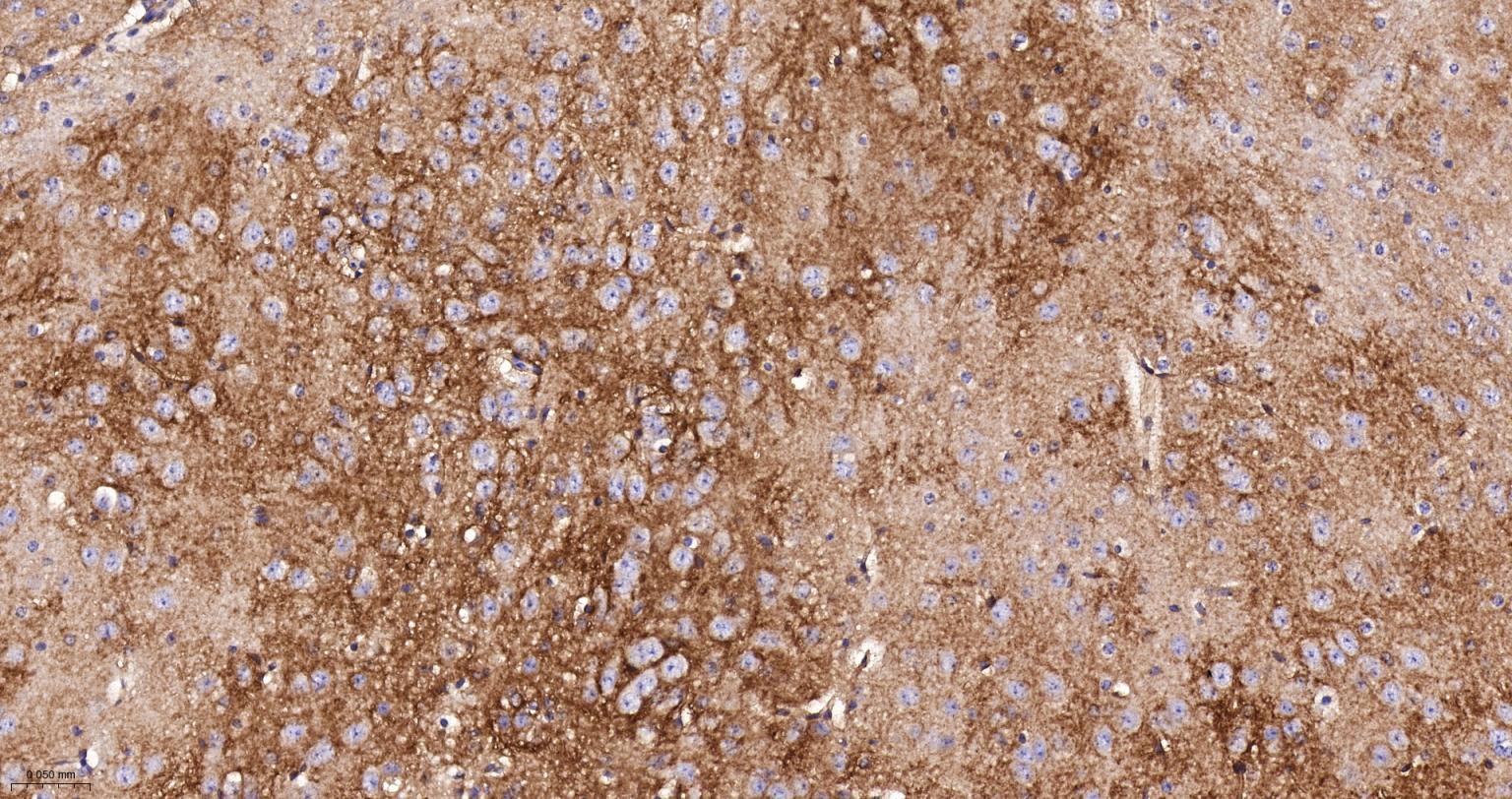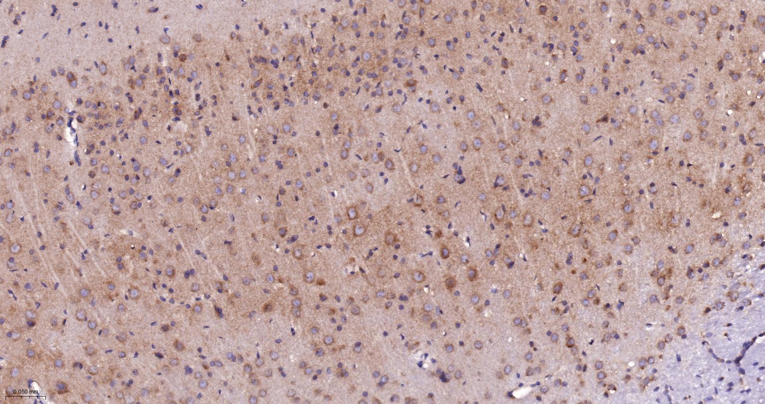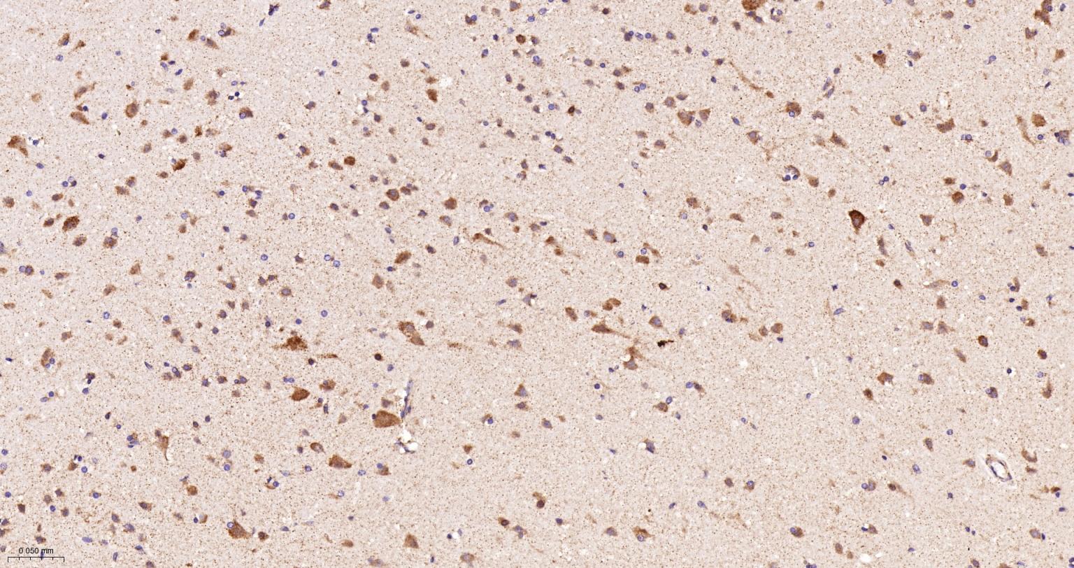 Paraformaldehyde-fixed, paraffin embedded Rat Cerebrum; Antigen retrieval by boiling in sodium citrate buffer (pH6.0) for 15 min; The section was incubated with NDUFS4 Recombinant Monoclonal Antibody, Unconjugated (bsm-62919R) at 1:200 overnight at 4°C, followed by conjugation to the bs-0295G-HRP and DAB (C-0010) staining.