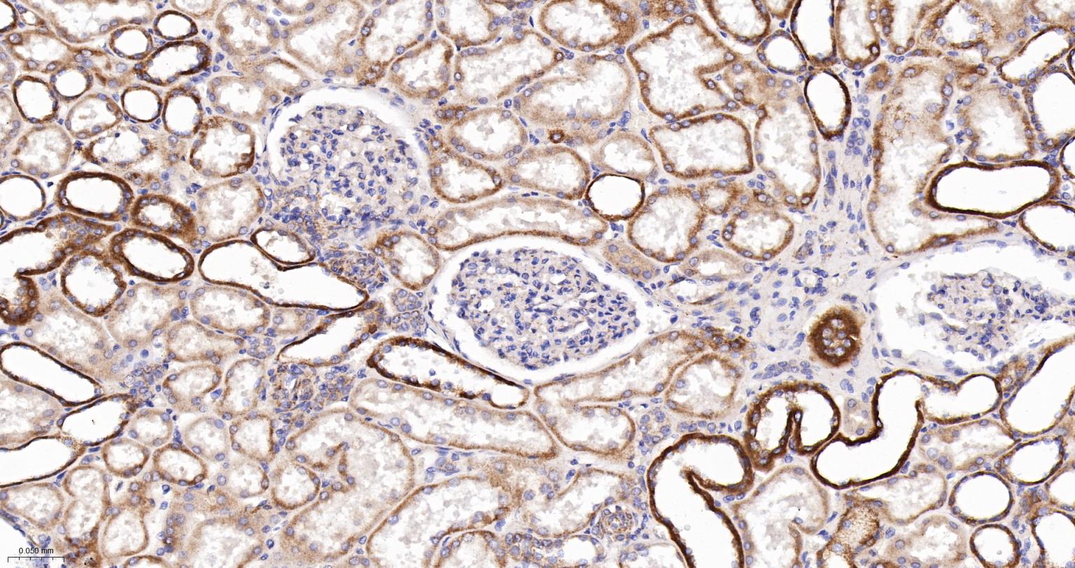 Paraformaldehyde-fixed, paraffin embedded Human Kidney; Antigen retrieval by boiling in sodium citrate buffer (pH6.0) for 15 min; The section was incubated with NDUFS4 Recombinant Monoclonal Antibody, Unconjugated (bsm-62919R) at 1:200 overnight at 4°C, followed by conjugation to the bs-0295G-HRP and DAB (C-0010) staining.
