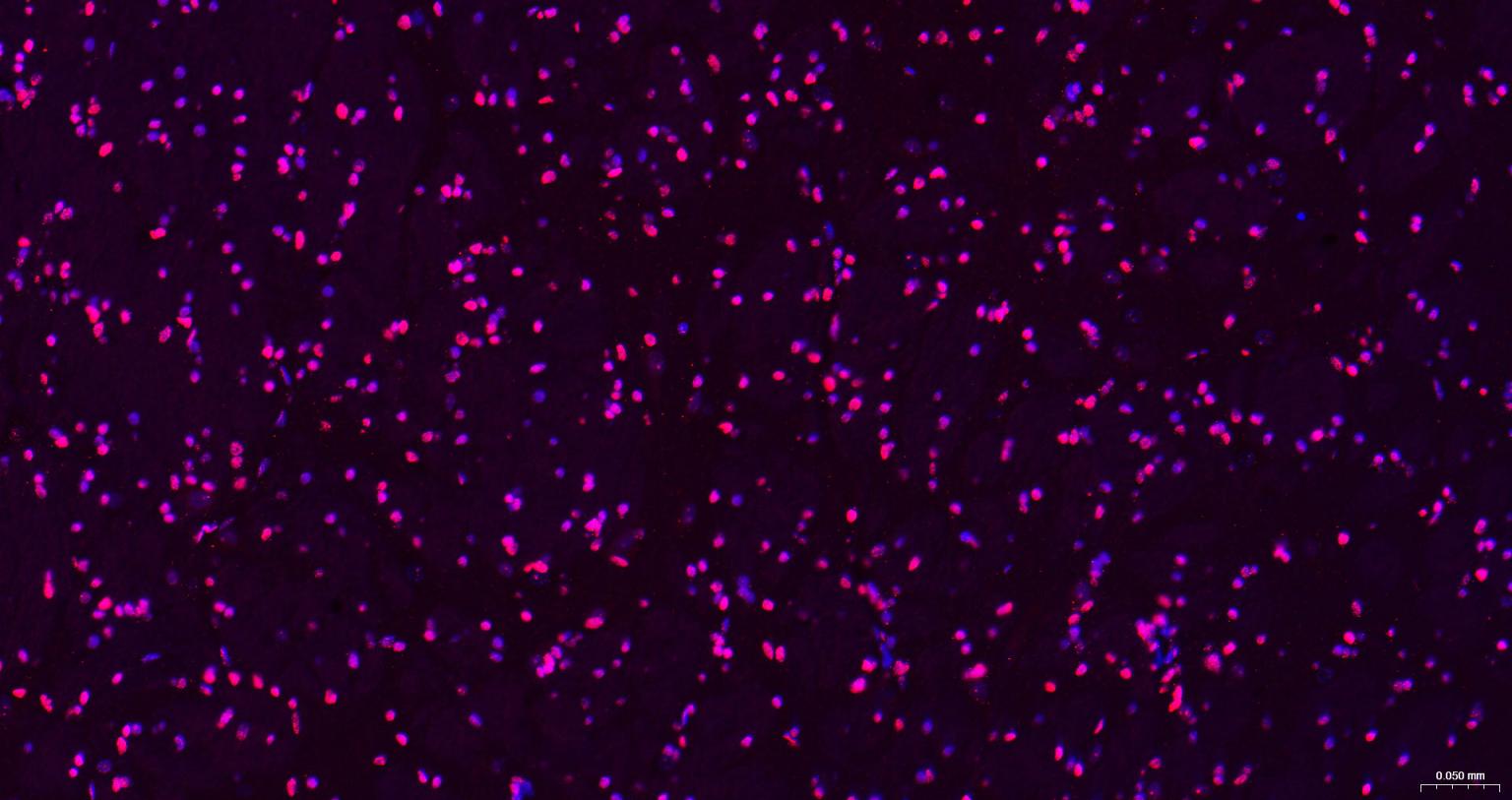Paraformaldehyde-fixed, paraffin embedded Rat brain; Antigen retrieval by boiling in sodium citrate buffer (pH6.0) for 15 min; The section was incubated with OTX1/2 Monoclonal Antibody, Unconjugated (bsm-62926R) at 1:200 overnight at 4°C. Followed by conjugated Goat Anti-Ratbbit IgG antibody (red, bs-0295G-BF594), DAPI (blue, C02-04002) was used to stain the cell nuclei.
