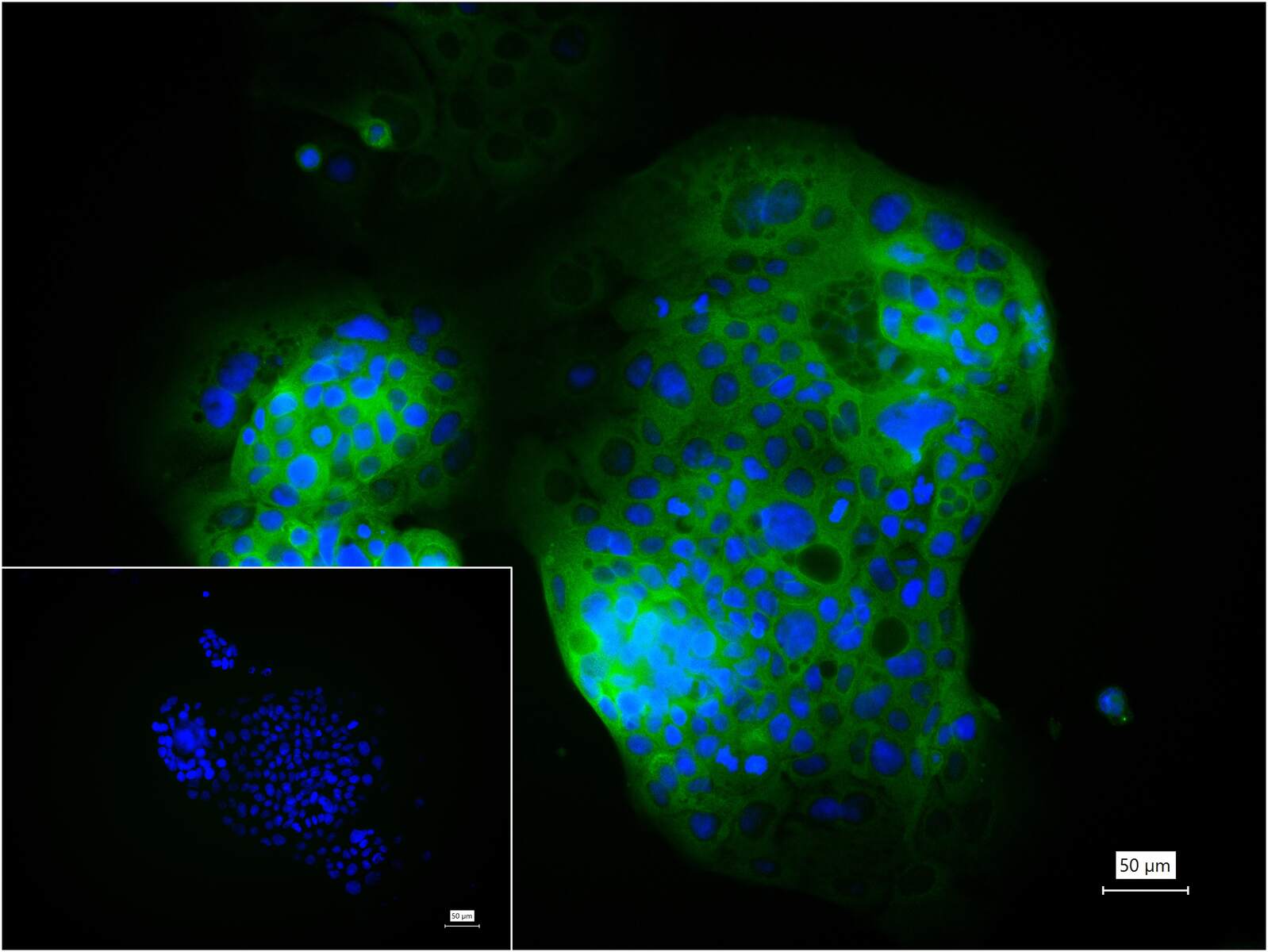 4% Paraformaldehyde-fixed Caco-2 (H) cell; Triton X-100 at r.t. for 20 min; Antibody incubation with (PDLIM1) monoclonal Antibody, unconjugated (bsm-62930R) 1:100, 90 min at 37°C; followed by BF488 conjugated Goat Anti-Rabbit IgG antibody (green, bs-60295G-BF488) at 37°C for 90 min, DAPI (blue, C02-04002) was used to stain the cell nuclei. PBS instead of the primary antibody was used as the blank control.