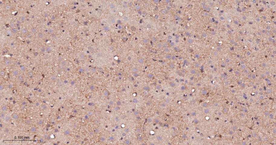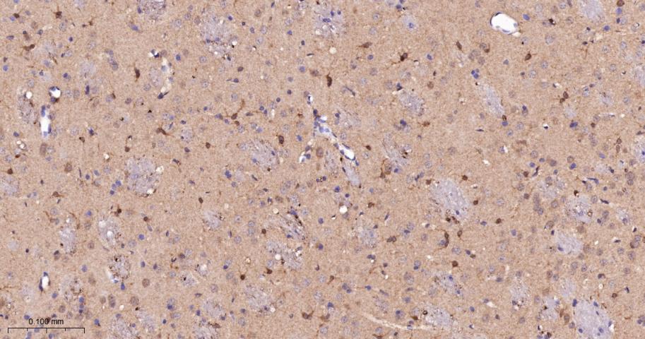 Paraformaldehyde-fixed, paraffin embedded Rat Cerebrum; Antigen retrieval by boiling in sodium citrate buffer (pH6.0) for 15 min; The section was incubated with PKC delta/theta Monoclonal Antibody, Unconjugated (bsm-62953R) at 1:200 overnight at 4°C, followed by conjugation to the bs-0295G-HRP and DAB (C-0010) staining.