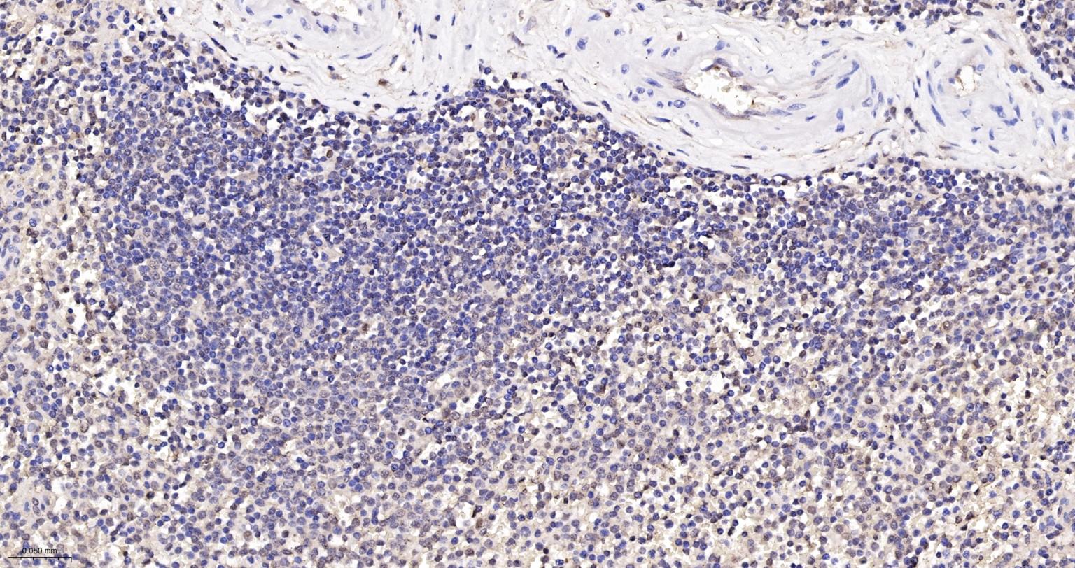 Paraformaldehyde-fixed, paraffin embedded Human Spleen; Antigen retrieval by boiling in sodium citrate buffer (pH6.0) for 15 min; The section was incubated with PSMB10 Monoclonal Antibody, Unconjugated (bsm-62964R) at 1:200 overnight at 4°C, followed by conjugation to the bs-0295G-HRP and DAB (C-0010) staining.