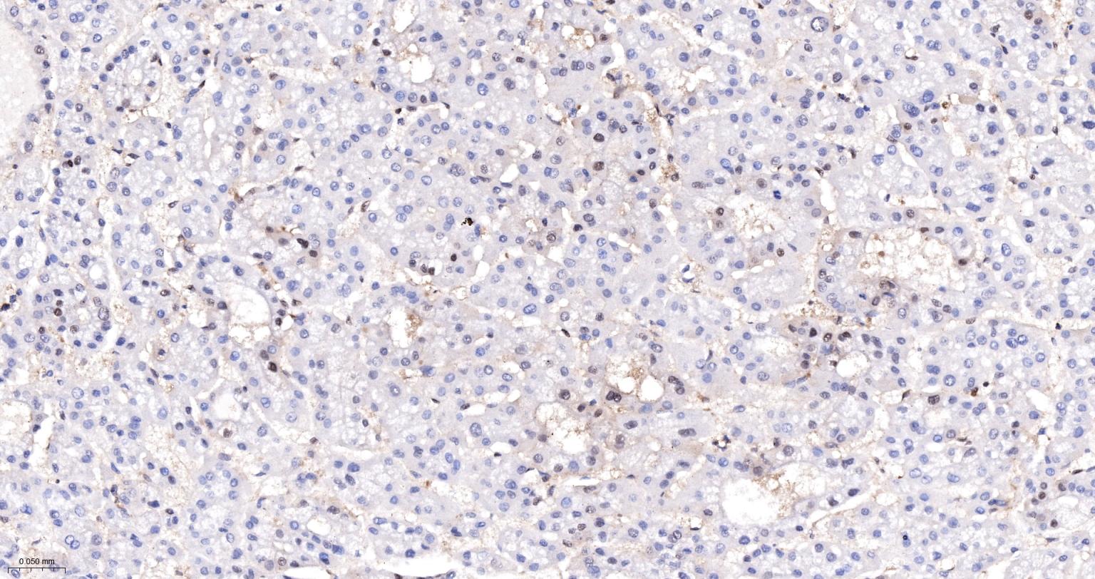 Paraformaldehyde-fixed, paraffin embedded Human Liver; Antigen retrieval by boiling in sodium citrate buffer (pH6.0) for 15 min; The section was incubated with PSMB10 Monoclonal Antibody, Unconjugated (bsm-62964R) at 1:200 overnight at 4°C, followed by conjugation to the bs-0295G-HRP and DAB (C-0010) staining.