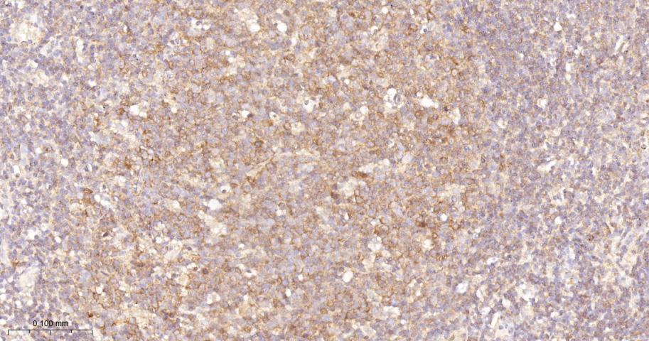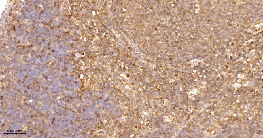 Paraformaldehyde-fixed, paraffin embedded Human Tonsil; Antigen retrieval by boiling in sodium citrate buffer (pH6.0) for 15 min; The section was incubated with RelB Monoclonal Antibody, Unconjugated (bsm-62968R) at 1:200 overnight at 4°C, followed by conjugation to the bs-0295G-HRP and DAB (C-0010) staining.