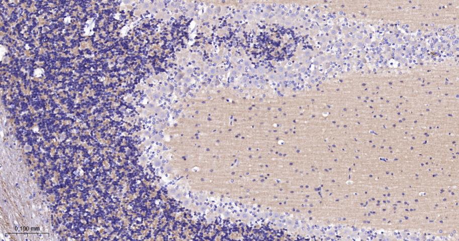 Paraformaldehyde-fixed, paraffin embedded Rat Cerebellum; Antigen retrieval by boiling in sodium citrate buffer (pH6.0) for 15 min; The section was incubated with SNAP25 Monoclonal Antibody, Unconjugated (bsm-62983R) at 1:200 overnight at 4°C, followed by conjugation to the bs-0295G-HRP and DAB (C-0010) staining.