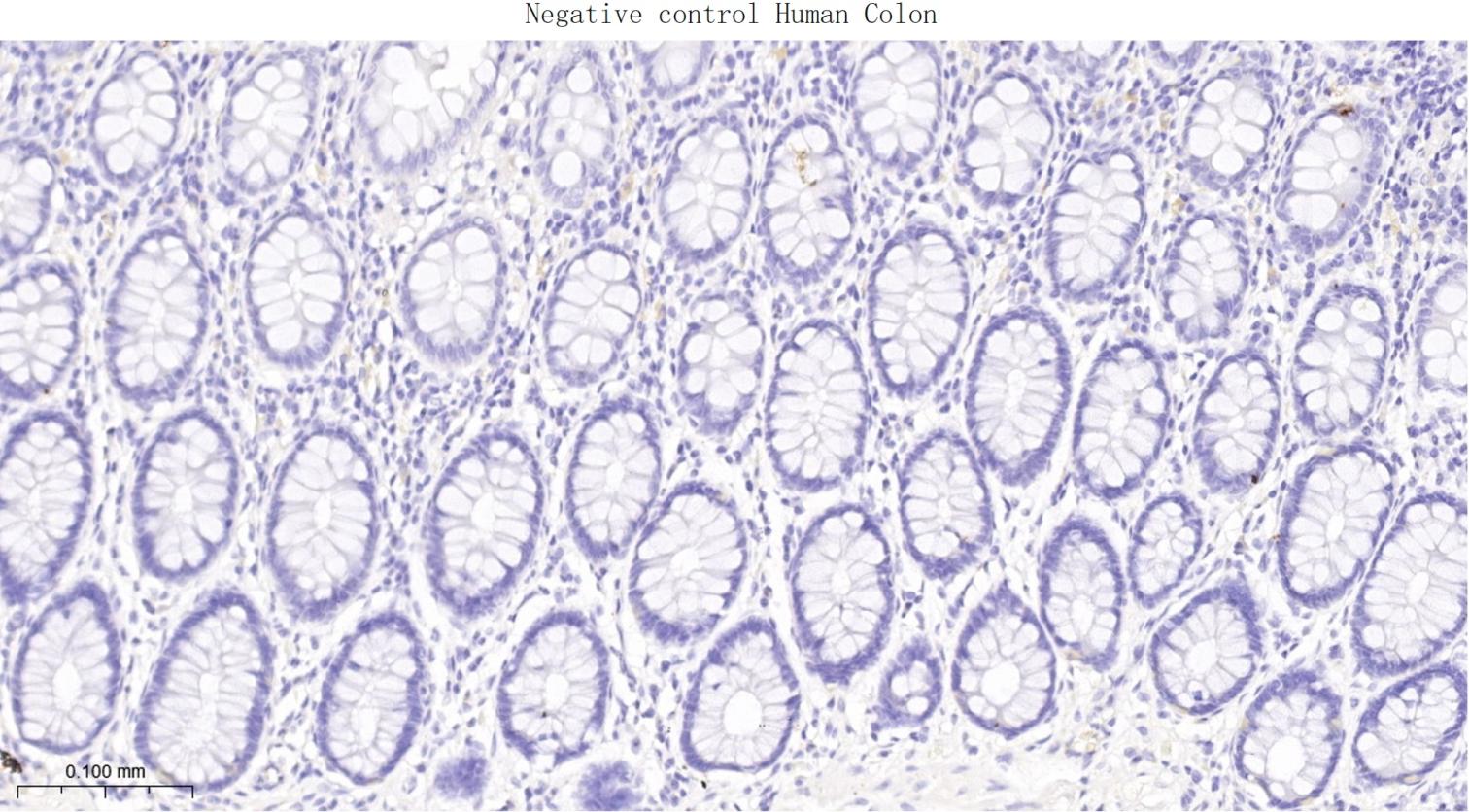 (Negative control) Paraformaldehyde-fixed, paraffin embedded Human Colon; Antigen retrieval by boiling in sodium citrate buffer (pH6.0) for 15 min; The section was incubated with SNAP25 Monoclonal Antibody, Unconjugated (bsm-62983R) at 1:200 overnight at 4°C, followed by conjugation to the bs-0295G-HRP and DAB (C-0010) staining.