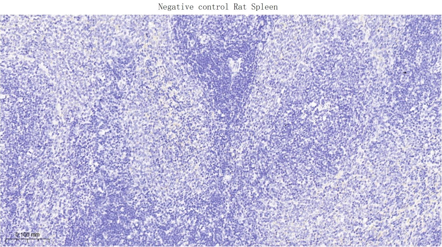 (Negative control) Paraformaldehyde-fixed, paraffin embedded Rat Spleen; Antigen retrieval by boiling in sodium citrate buffer (pH6.0) for 15 min; The section was incubated with SNAP25 Monoclonal Antibody, Unconjugated (bsm-62983R) at 1:200 overnight at 4°C, followed by conjugation to the bs-0295G-HRP and DAB (C-0010) staining.