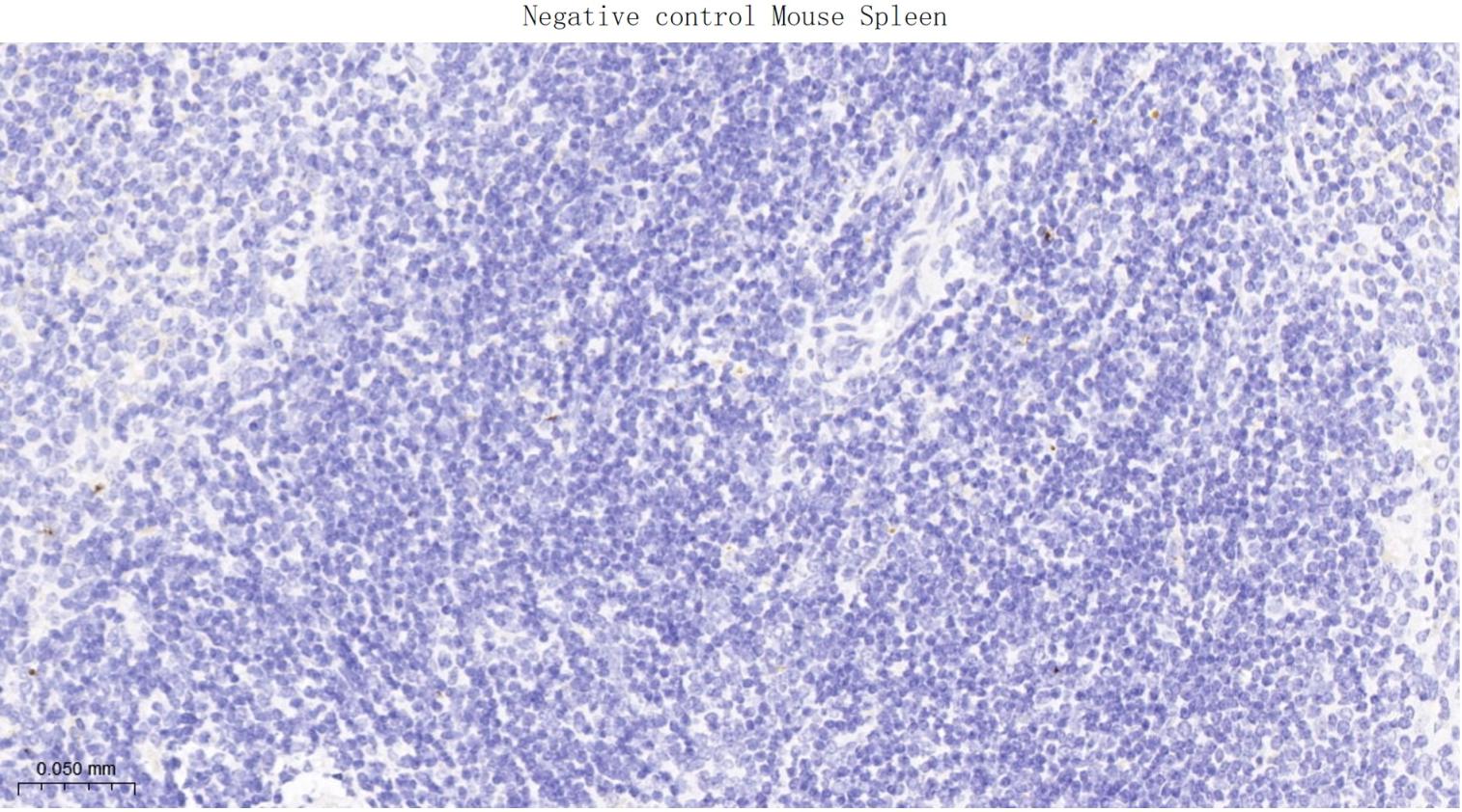 (Negative control) Paraformaldehyde-fixed, paraffin embedded Mouse Spleen; Antigen retrieval by boiling in sodium citrate buffer (pH6.0) for 15 min; The section was incubated with SNAP25 Monoclonal Antibody, Unconjugated (bsm-62983R) at 1:200 overnight at 4°C, followed by conjugation to the bs-0295G-HRP and DAB (C-0010) staining.
