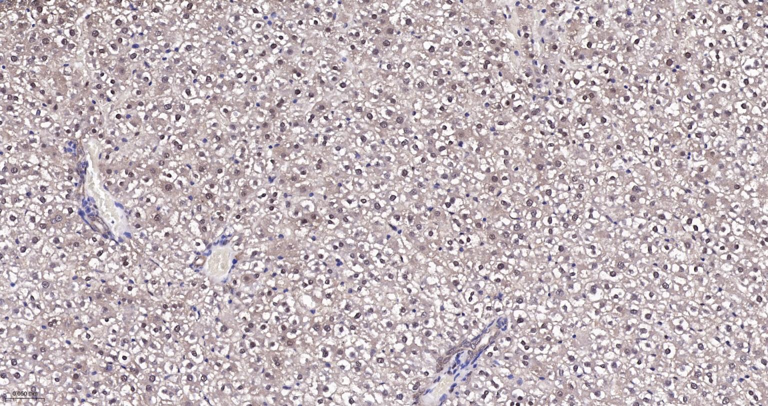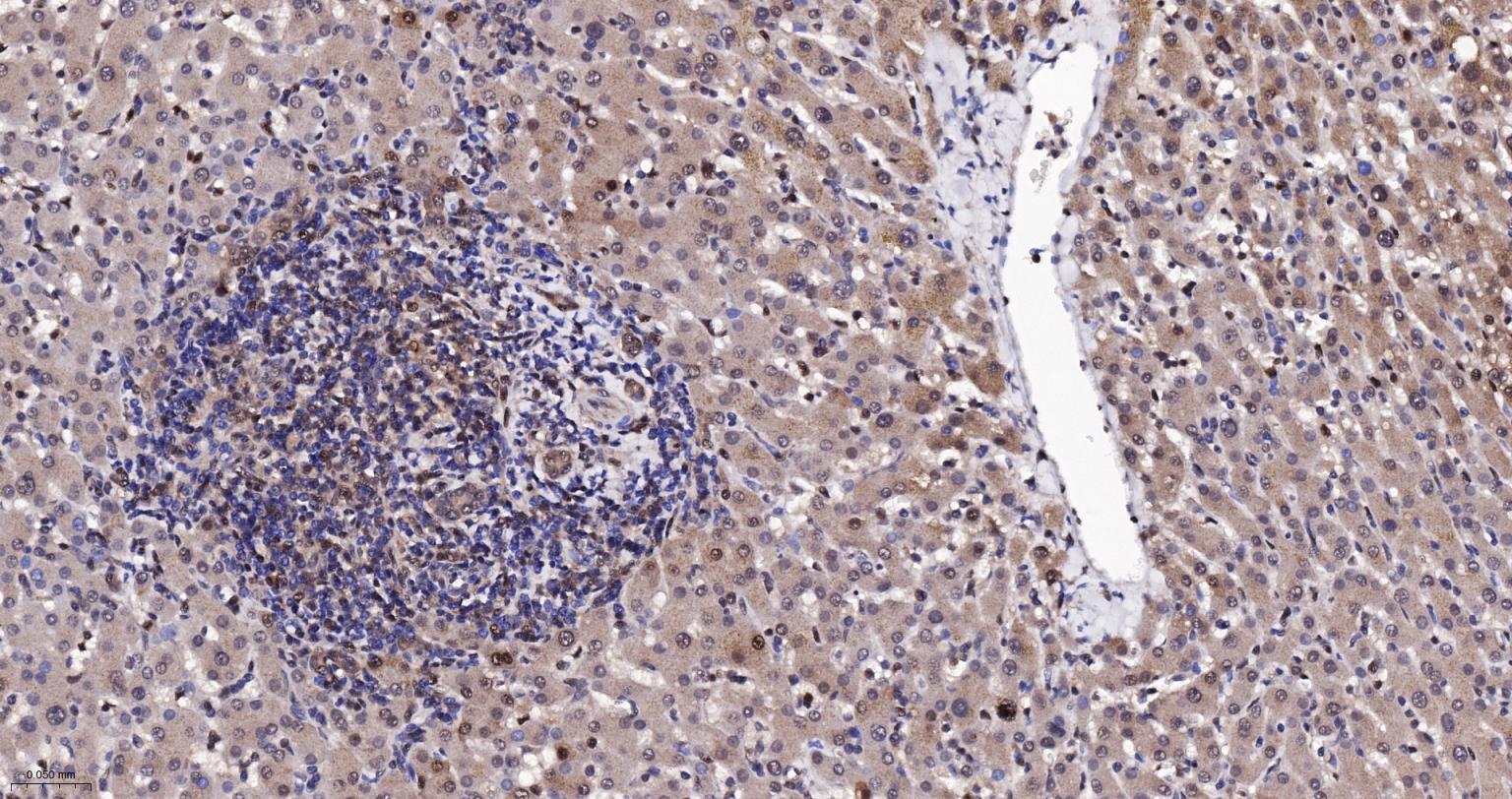 Paraformaldehyde-fixed, paraffin embedded Rat Liver; Antigen retrieval by boiling in sodium citrate buffer (pH6.0) for 15 min; Antibody incubation with K48-linkage specific ubiquitin Monoclonal Antibody, Unconjugated(bsm-63005R) at 1:200 overnight at 4°C, followed by conjugation to the bs-0295G-HRP and DAB (C-0010) staining and DAB (C-0010) staining.