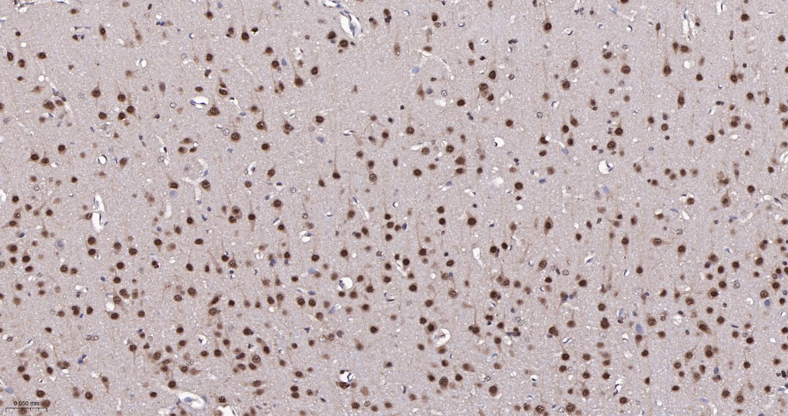 Paraformaldehyde-fixed, paraffin embedded Rat Cerebrum; Antigen retrieval by boiling in sodium citrate buffer (pH6.0) for 15 min; Antibody incubation with K48-linkage specific ubiquitin Monoclonal Antibody, Unconjugated(bsm-63005R) at 1:200 overnight at 4°C, followed by conjugation to the bs-0295G-HRP and DAB (C-0010) staining and DAB (C-0010) staining.