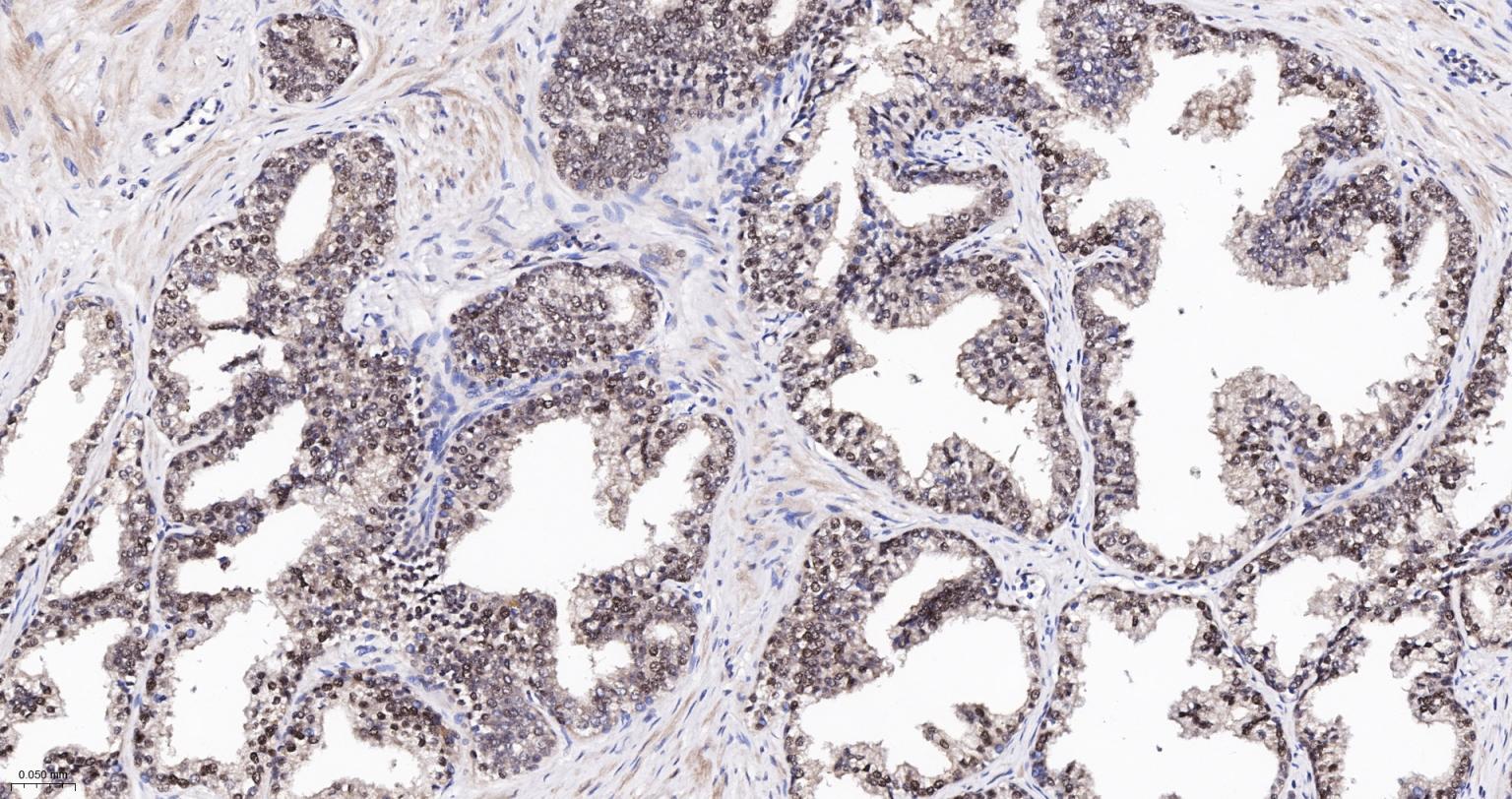 Paraformaldehyde-fixed, paraffin embedded Human Prostate Cancer; Antigen retrieval by boiling in sodium citrate buffer (pH6.0) for 15 min; Antibody incubation with K48-linkage specific ubiquitin Monoclonal Antibody, Unconjugated(bsm-63005R) at 1:200 overnight at 4°C, followed by conjugation to the bs-0295G-HRP and DAB (C-0010) staining and DAB (C-0010) staining.