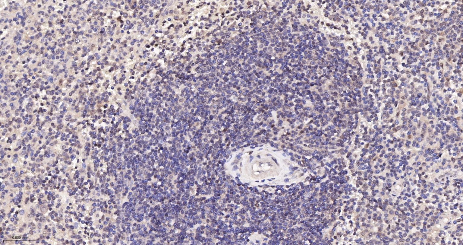 Paraformaldehyde-fixed, paraffin embedded Mouse Spleen; Antigen retrieval by boiling in sodium citrate buffer (pH6.0) for 15 min; Antibody incubation with K48-linkage specific ubiquitin Monoclonal Antibody, Unconjugated(bsm-63005R) at 1:200 overnight at 4°C, followed by conjugation to the bs-0295G-HRP and DAB (C-0010) staining and DAB (C-0010) staining.