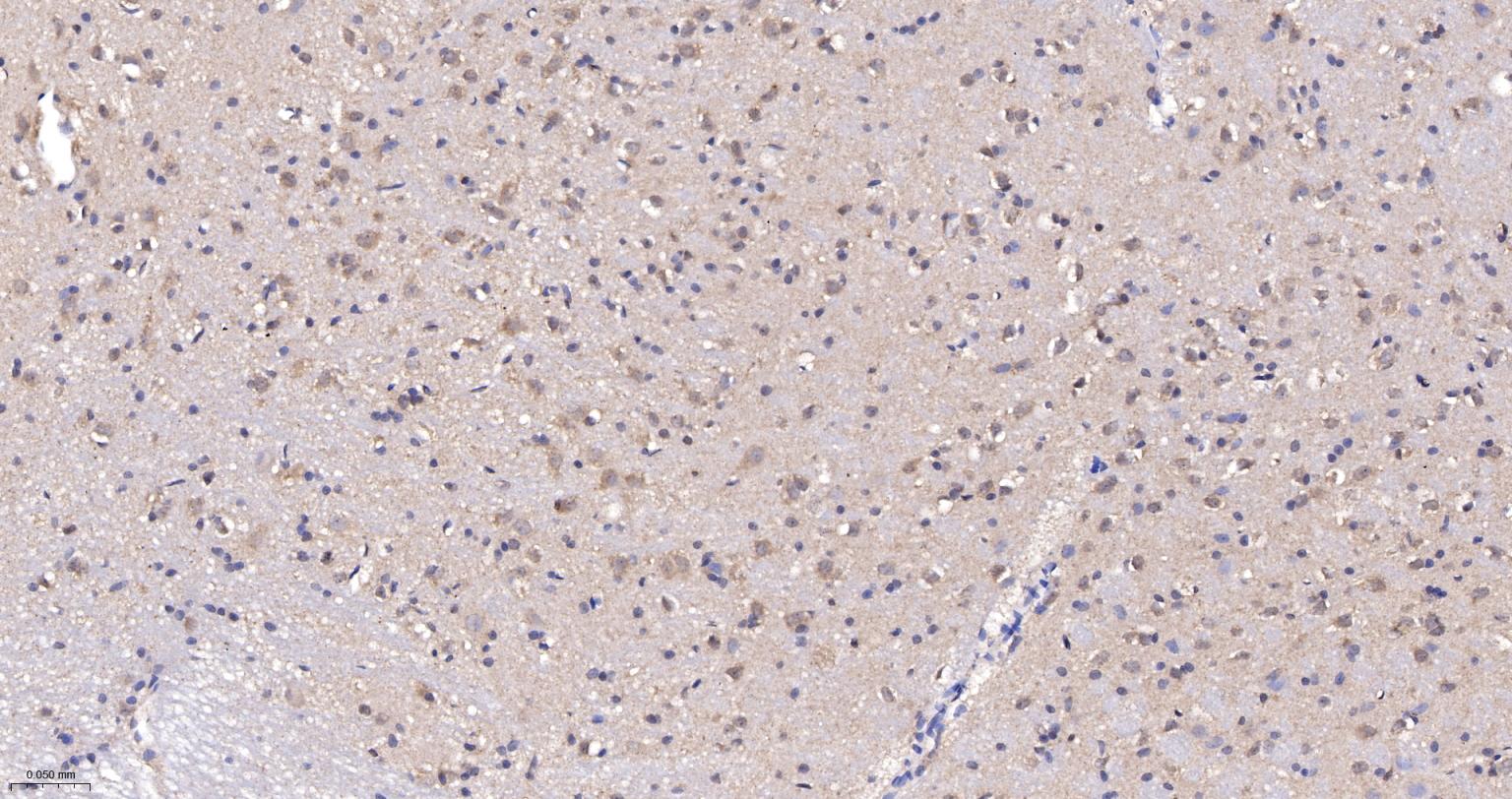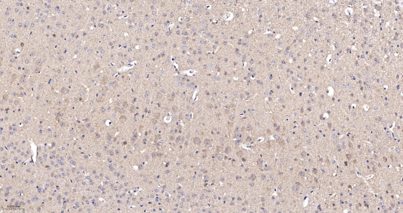 Paraformaldehyde-fixed, paraffin embedded Rat Cerebrum; Antigen retrieval by boiling in sodium citrate buffer (pH6.0) for 15 min; The section was incubated with UCHL3 Monoclonal Antibody, Unconjugated (bsm-63011R) at 1:200 overnight at 4°C, followed by conjugation to the bs-0295G-HRP and DAB (C-0010) staining.