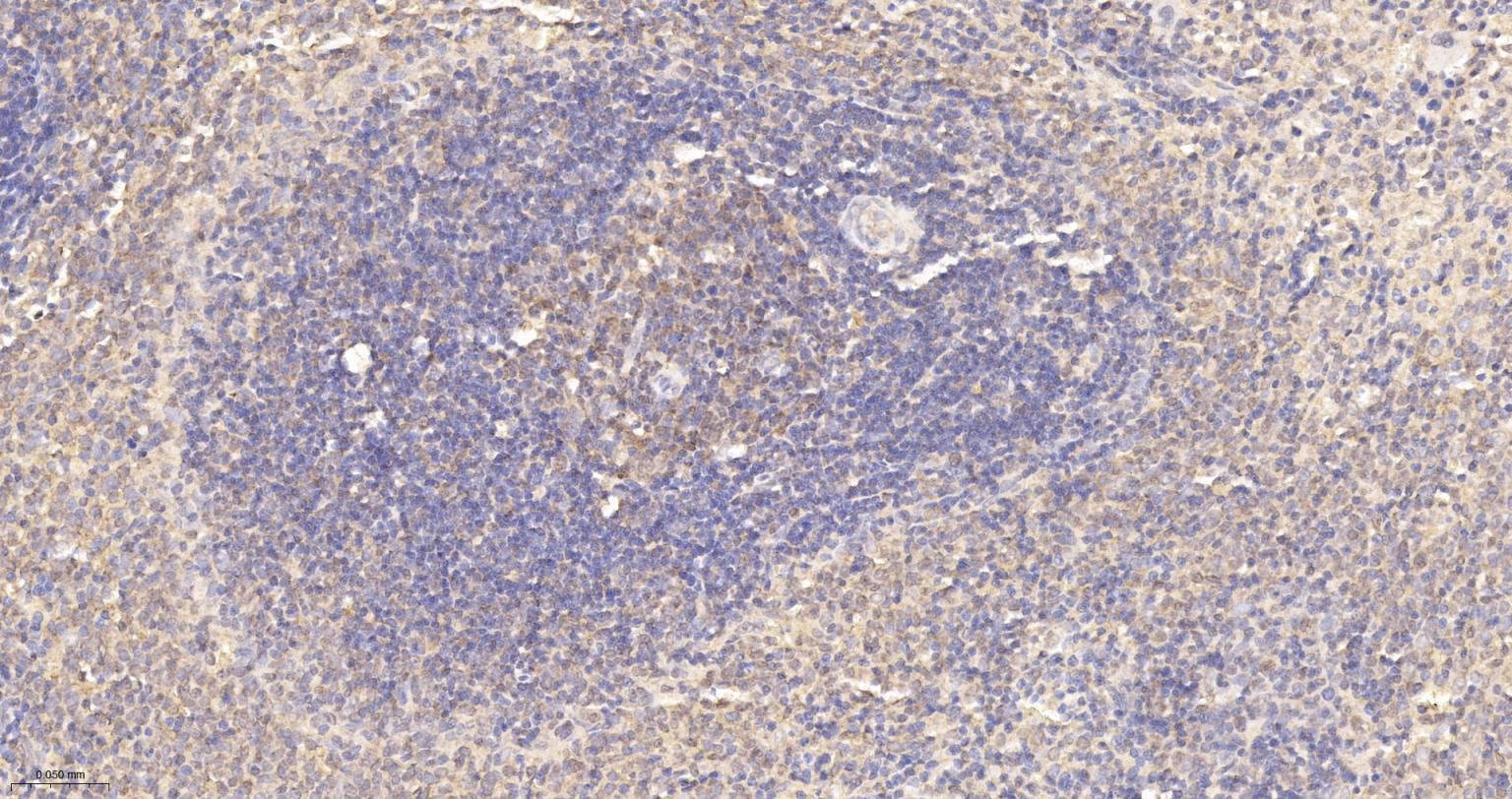 Paraformaldehyde-fixed, paraffin embedded Rat Spleen; Antigen retrieval by boiling in sodium citrate buffer (pH6.0) for 15 min; The section was incubated with UCHL3 Monoclonal Antibody, Unconjugated (bsm-63011R) at 1:200 overnight at 4°C, followed by conjugation to the bs-0295G-HRP and DAB (C-0010) staining.