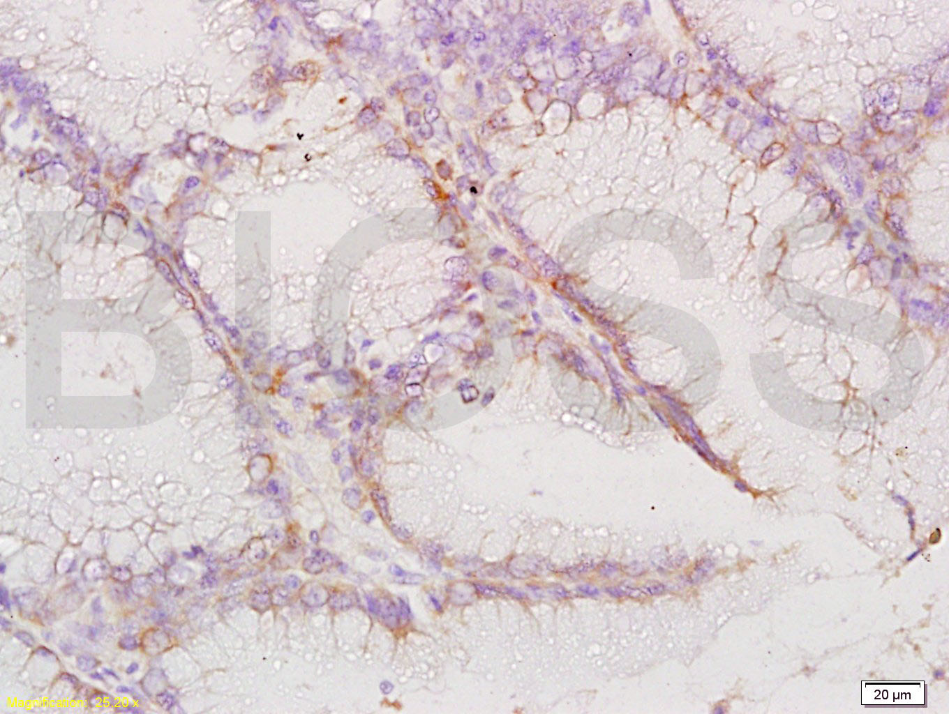Antigen retrieval: citrate buffer ( 0.01M, pH 6.0 ), Boiling bathing for 15min; Block endogenous peroxidase by 3% Hydrogen peroxide for 30min; Blocking buffer (normal goat serum,C-0005) at 37℃ for 20 min;