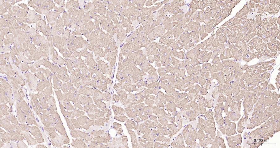 Paraformaldehyde-fixed, paraffin embedded Mouse Heart; Antigen retrieval by boiling in sodium citrate buffer (pH6.0) for 15 min; The section was incubated with Cytochrome C Polyclonal Antibody, Unconjugated (bs-0013R) at 1:200 overnight at 4°C, followed by conjugation to the bs-0295G-HRP and DAB (C-0010) staining.