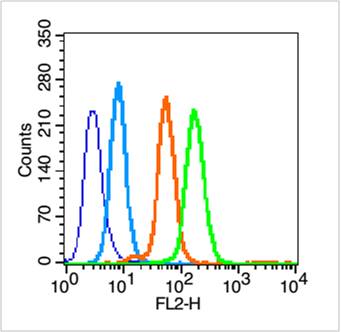 Secondary Antibody (white blue line): Goat anti-rabbit IgG-PE