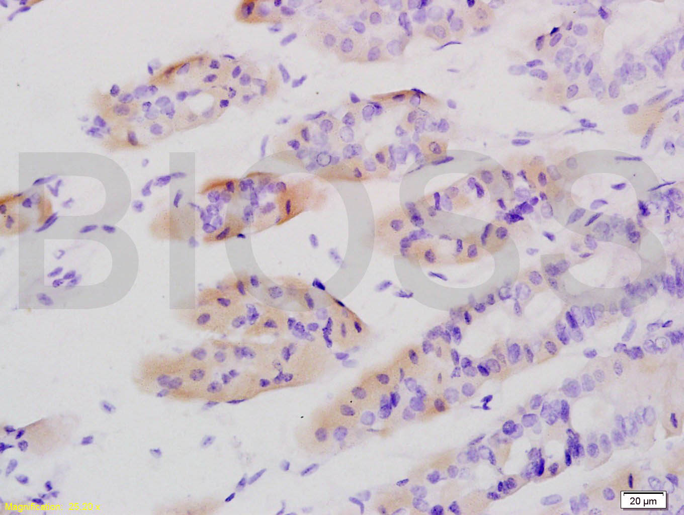 Antigen retrieval: citrate buffer ( 0.01M, pH 6.0 ), Boiling bathing for 15min; Block endogenous peroxidase by 3% Hydrogen peroxide for 30min; Blocking buffer (normal goat serum,C-0005) at 37℃ for 20 min;