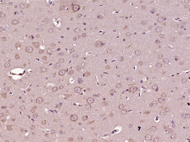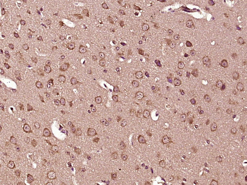 Paraformaldehyde-fixed, paraffin embedded (Rat Cerebrum); Antigen retrieval by boiling in sodium citrate buffer (pH6.0) for 15min; Block endogenous peroxidase by 3% hydrogen peroxide for 20 minutes; Blocking buffer (normal goat serum) at 37°C for 30min; Antibody incubation with (Tyrosine Hydroxylase) Polyclonal Antibody, Unconjugated (bs-0016R) at 1:400 overnight at 4°C, followed by operating according to SP Kit(Rabbit) (sp-0023) instructionsand DAB staining.