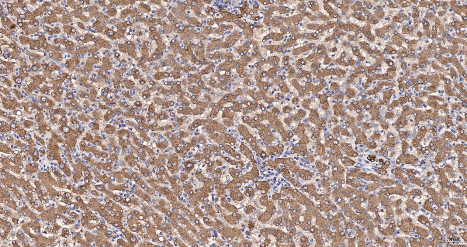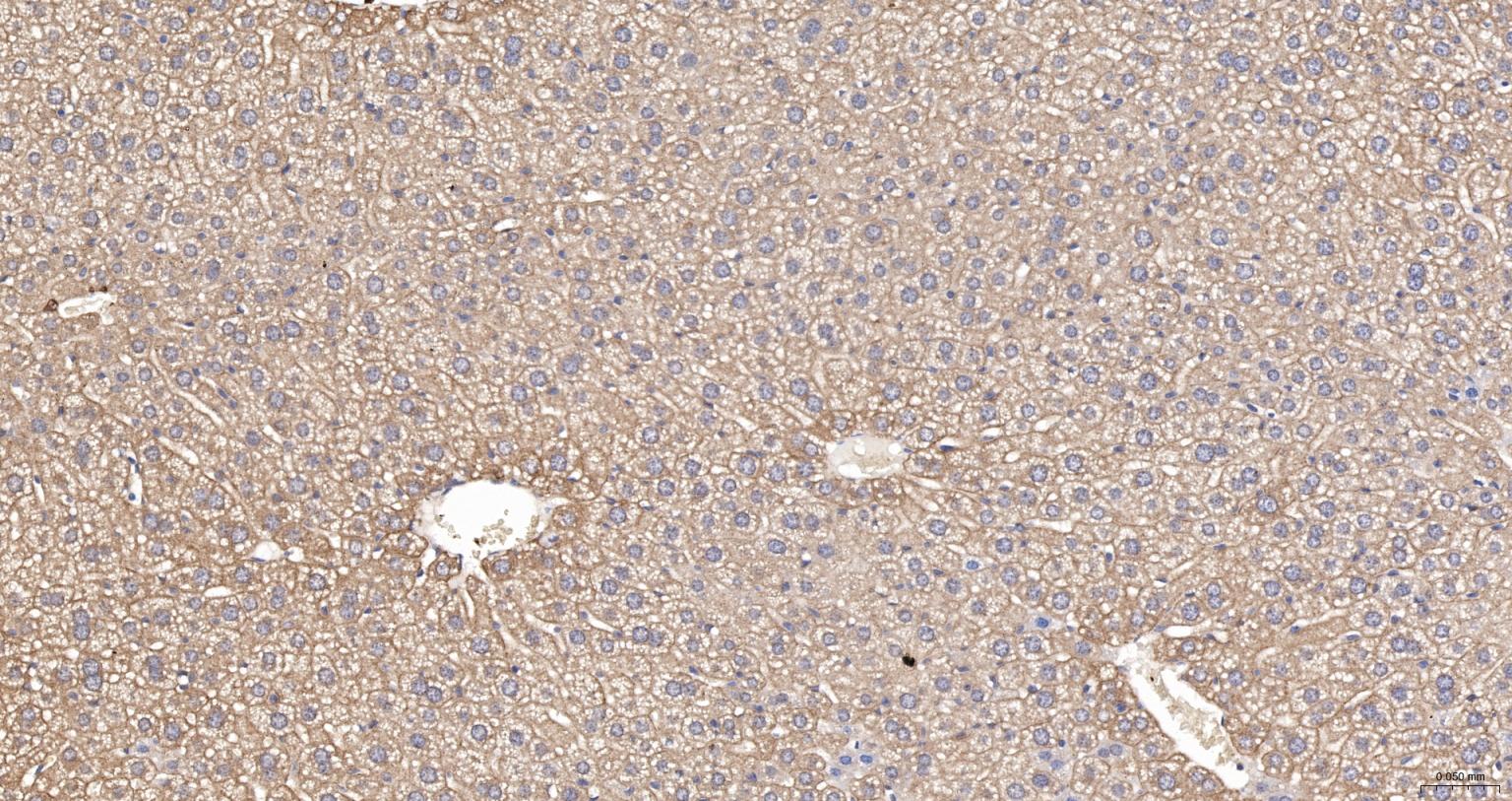 Paraformaldehyde-fixed, paraffin embedded Mouse Liver; Antigen retrieval by boiling in sodium citrate buffer (pH6.0) for 15 min; The section was incubated with CK18 Polyclonal Antibody, Unconjugated (bs-1339R) at 1:200 overnight at 4°C, followed by conjugation to the bs-0295G-HRP and DAB (C-0010) staining.