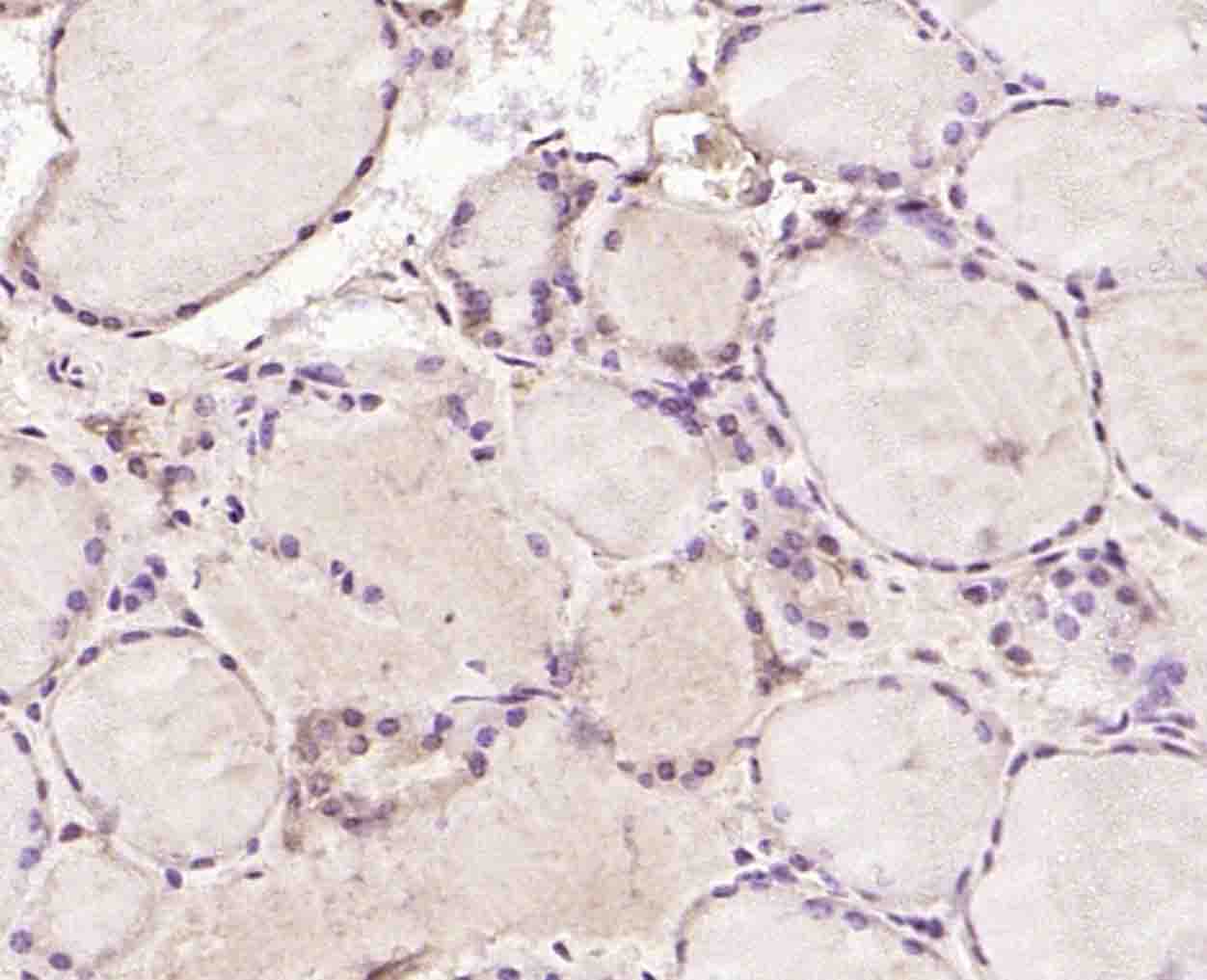 Paraformaldehyde-fixed, paraffin embedded (mouse thyroid gland); Antigen retrieval by boiling in sodium citrate buffer (pH6.0) for 15min; Block endogenous peroxidase by 3% hydrogen peroxide for 20 minutes; Blocking buffer (normal goat serum) at 37°C for 30min; Incubation with (LIS1) Polyclonal Antibody, Unconjugated (bs-2035R) at 1:200 overnight at 4°C, followed by operating according to SP Kit(Rabbit) (sp-0023) instructionsand DAB staining.