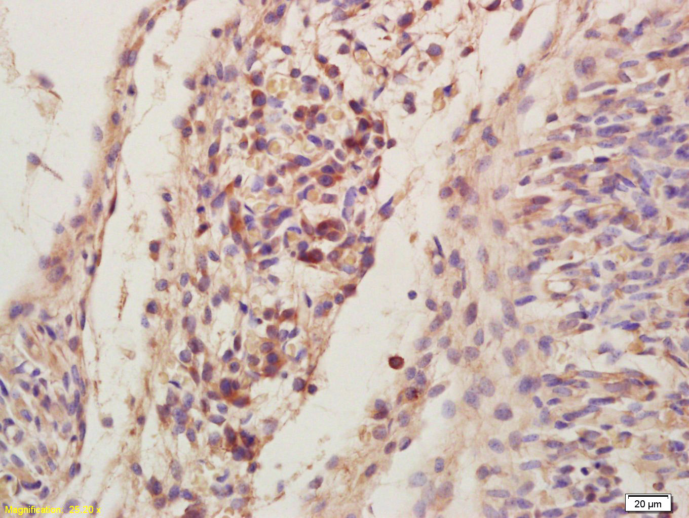 Antigen retrieval: citrate buffer ( 0.01M, pH 6.0 ), Boiling bathing for 15min; Block endogenous peroxidase by 3% Hydrogen peroxide for 30min; Blocking buffer (normal goat serum,C-0005) at 37℃ for 20 min;