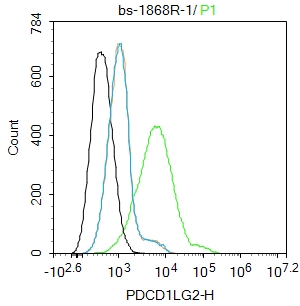 Primary Antibody (green line): Rabbit Anti-PDCD1LG2 antibody (bs-1868R)