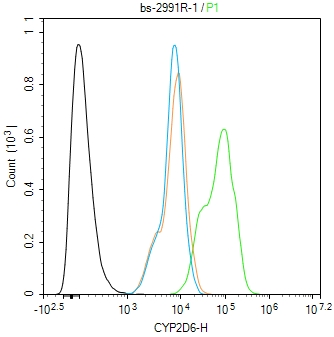Primary Antibody (green line): Rabbit Anti-CYP2D6 antibody (bs-2991R)