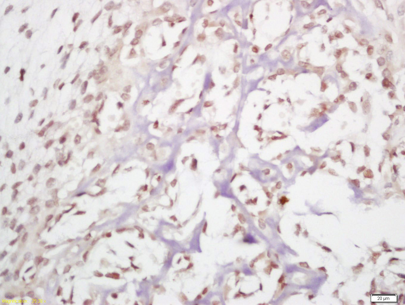 Antigen retrieval: citrate buffer ( 0.01M, pH 6.0 ), Boiling bathing for 15min; Block endogenous peroxidase by 3% Hydrogen peroxide for 30min; Blocking buffer (normal goat serum,C-0005) at 37℃ for 20 min;
