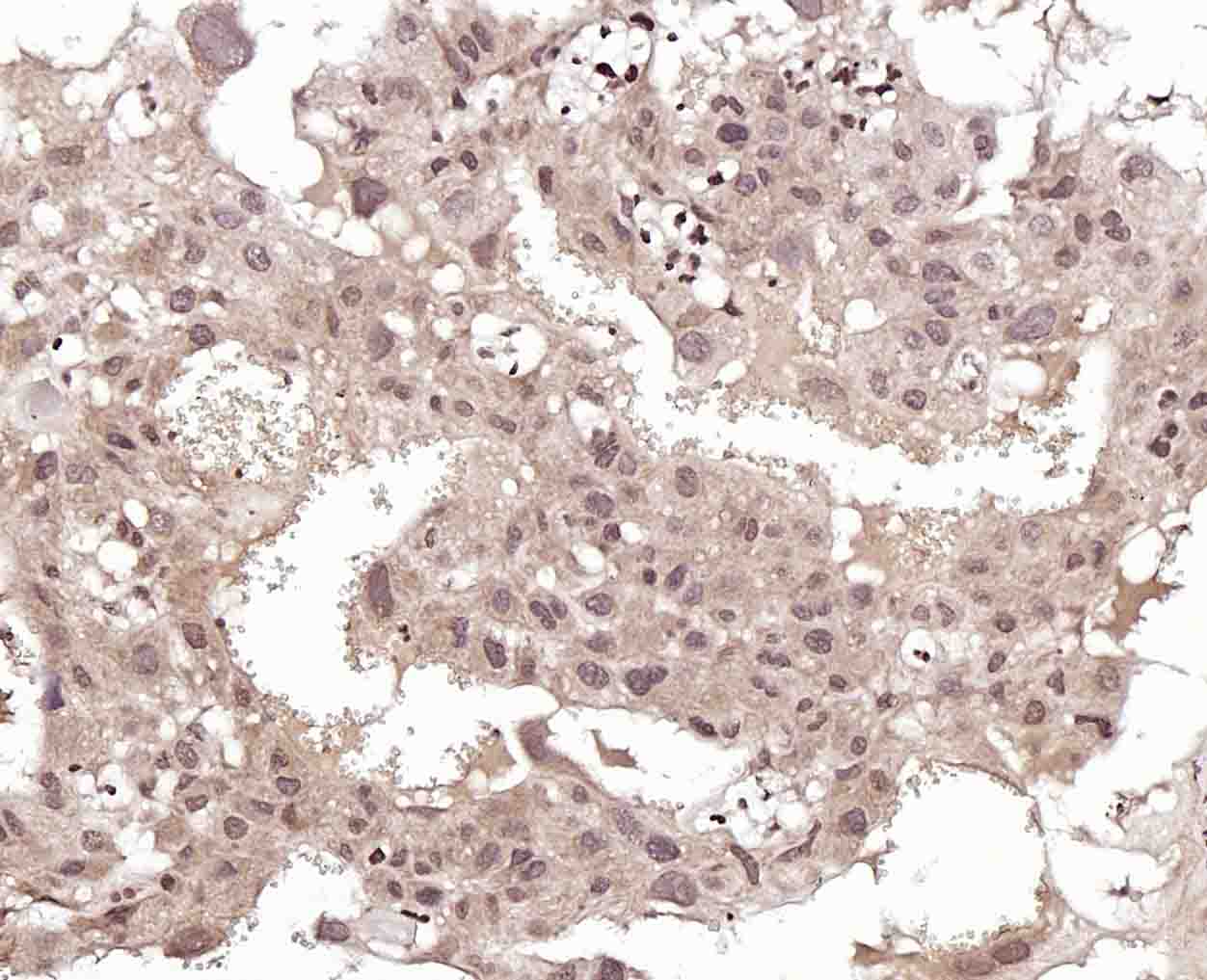 Paraformaldehyde-fixed, paraffin embedded (human Fallopian tube); Antigen retrieval by boiling in sodium citrate buffer (pH6.0) for 15min; Block endogenous peroxidase by 3% hydrogen peroxide for 20 minutes; Blocking buffer (normal goat serum) at 37°C for 30min; Incubation with (JMJD1B) Polyclonal Antibody, Unconjugated (bs-3824R) at 1:200 overnight at 4°C, followed by operating according to SP Kit(Rabbit) (sp-0023) instructionsand DAB staining.
