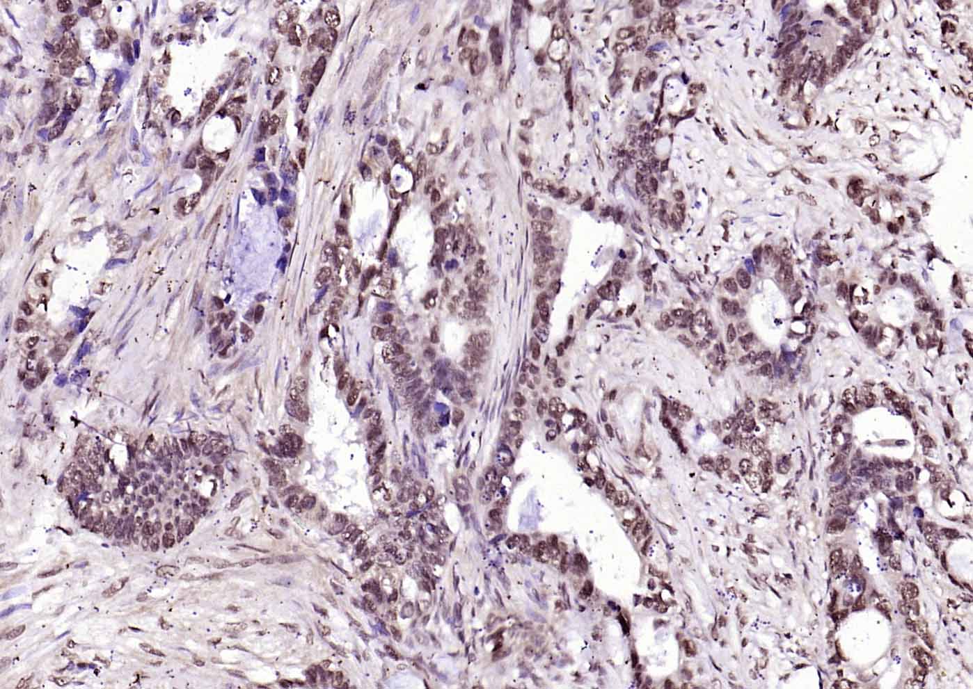 Paraformaldehyde-fixed, paraffin embedded Human Rectal Cancer; Antigen retrieval by boiling in sodium citrate buffer (pH6.0) for 15 min; Antibody incubation with Histone H4 Polyclonal Antibody, Unconjugated (bs-3826R) at 1:200 overnight at 4°C, followed by conjugation to the bs-0295G-HRP and DAB (C-0010) staining.