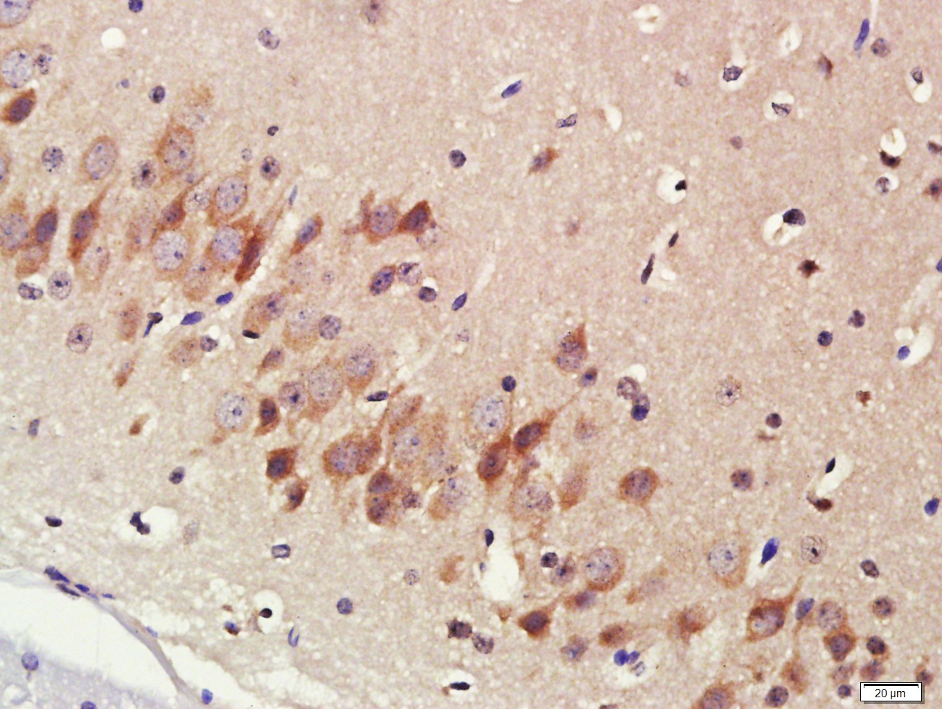 Paraformaldehyde-fixed, paraffin embedded (Mouse brain); Antigen retrieval by boiling in sodium citrate buffer (pH6.0) for 15min; Block endogenous peroxidase by 3% hydrogen peroxide for 20 minutes; Blocking buffer (normal goat serum) at 37°C for 30min; Antibody incubation with (CYP17) Polyclonal Antibody, Unconjugated (bs-3853R) at 1:400 overnight at 4°C, followed by a conjugated secondary (sp-0023) for 20 minutes and DAB staining.