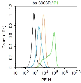 Primary Antibody (green line): Rabbit Anti-PKA R2 antibody (bs-3963R)