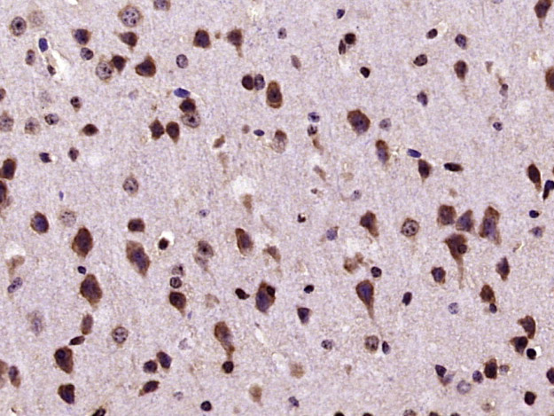Paraformaldehyde-fixed, paraffin embedded (mouse brain tissue); Antigen retrieval by microwave in sodium citratebuffer (pH6.0) ; Block endogenous peroxidase by 3% hydrogen peroxide for 30 minutes; Blocking buffer (3%BSA) at RTfor 30min; Antibody incubation with (SMURF2) Polyclonal/MonoclonalAntibody, Unconjugated (bs-4056R) at 1:400 overnight at 4℃,followed by conjugation to the secondary antibody (labeled with HRP)and DAB staining.